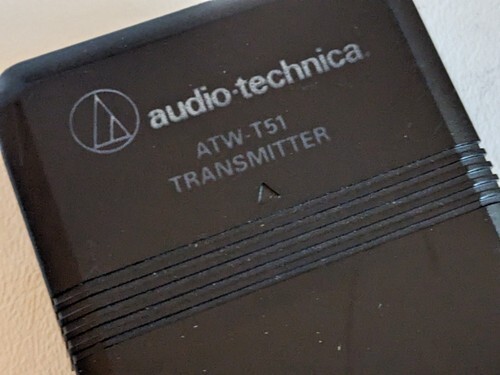 In vendita e un trasmettitore da cintura wireless Audio-Technica ATW-T51 usato con microfono da bavero AT829CW che utilizza la frequenza 735,95