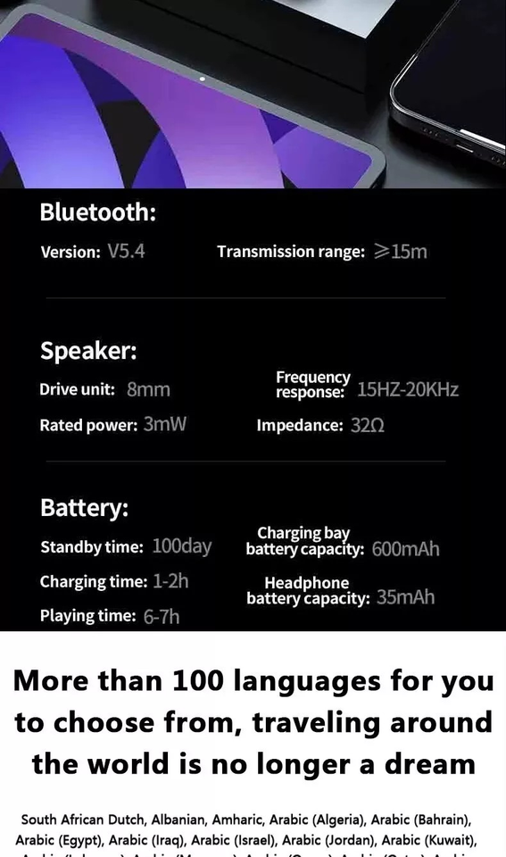 Experience the ultimate in communication and audio with our Wireless Headphones, featuring 9D stereo sound, Bluetooth 5.3 connectivity, and AI-powered translation capabilities through our dedicated app. Break language barriers and connect with people worldwide, while enjoying immersive audio and situational awareness."