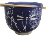 - Auspicious Blue Tombo Dragonfly Ceramic Donburi Ramen Bowl With Chopsticks Set
