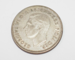 This is a 1951 George VI 50 Years of Federation One Florin Silver Coin from Australia. This commemorative coin has a fineness of 0.5 and weighs 11 grams. It celebrates the milestone of 50 years of federation in Australia and is a piece of history from the reign of King George VI. The coin is a valuable collectible for numismatists interested in Australian coins and historical commemorations.