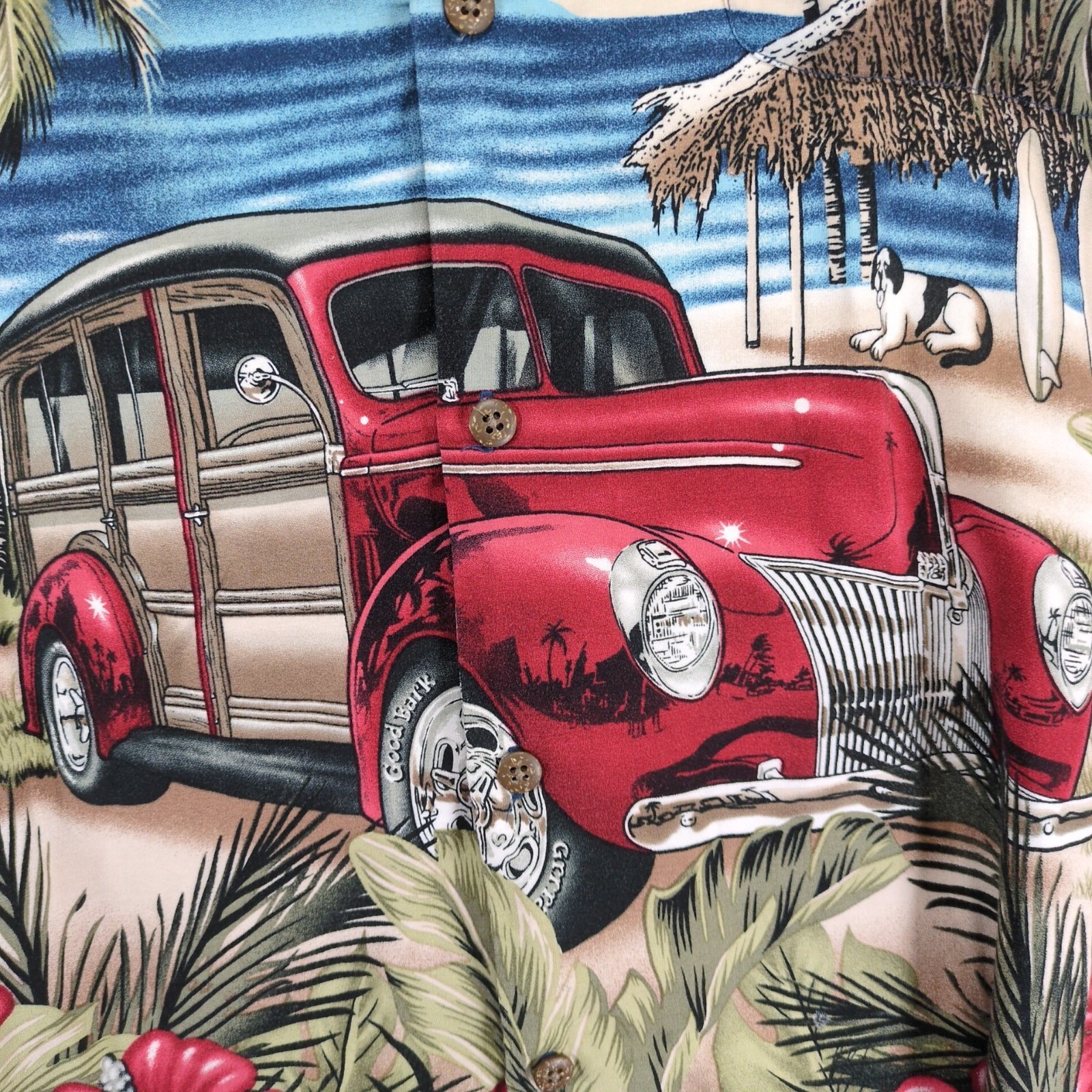 - Authentic Big Dogs Button Up Hawaiian Shirt Men's 4XL Tropical Woody Surf Beach