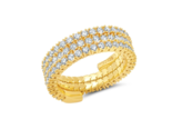 This adjustable ring features a triple band of graduated cubic zirconia. Crafted in .925 sterling silver and finished in 18kt yellow gold, small fits ring sizes 5-7 and medium fits ring sizes 7-9.