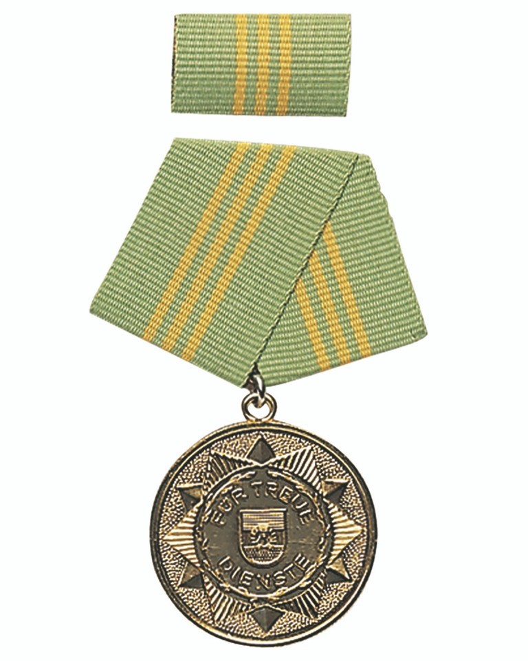 - Authentic East German Interior Ministry Gold 15-Year Service Medal with Ribbon