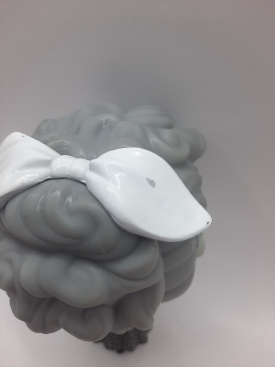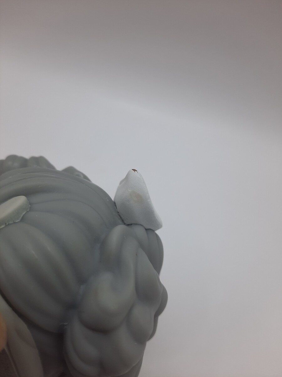 PREOWNED, MIGHT HAVE A FEW LIGHT MARKS. HER CHAIN DOES LOOKS LIKE SHE WAS HIT BUT WAS TAKEN OUT OF THE BOX THAT WAY.