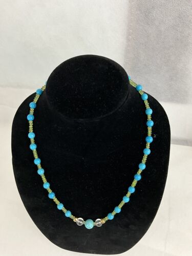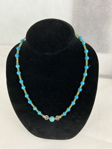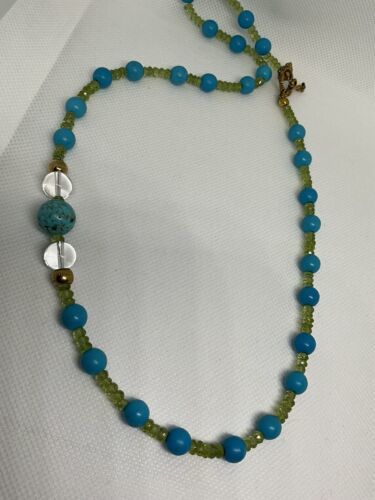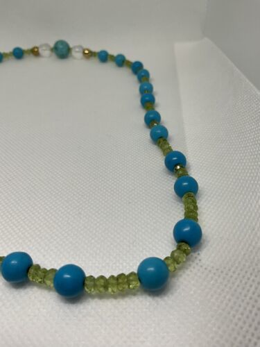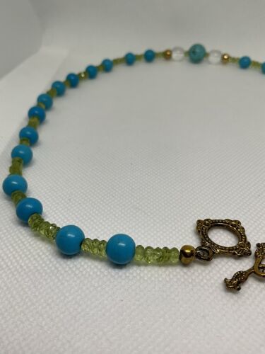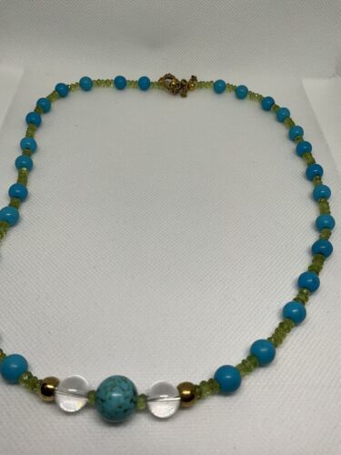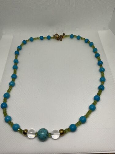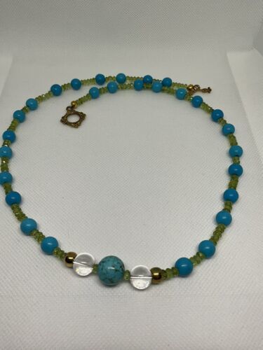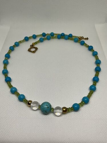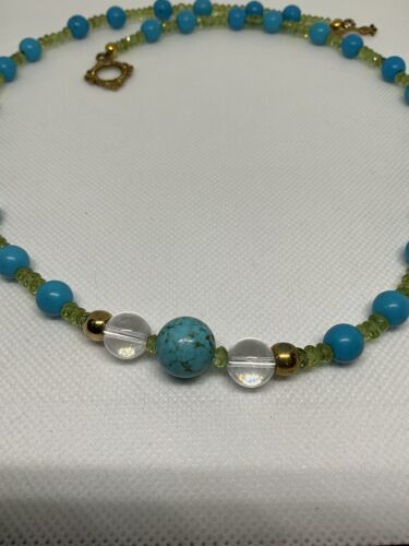 - Authentic NEW Turquoise Pendant Rock Crystal Gold Filled Bead Necklace