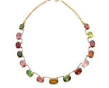 18k Gold 115 ct Multicolor Tourmaline and .8ct Diamond Riviere Necklace 17 3/4"