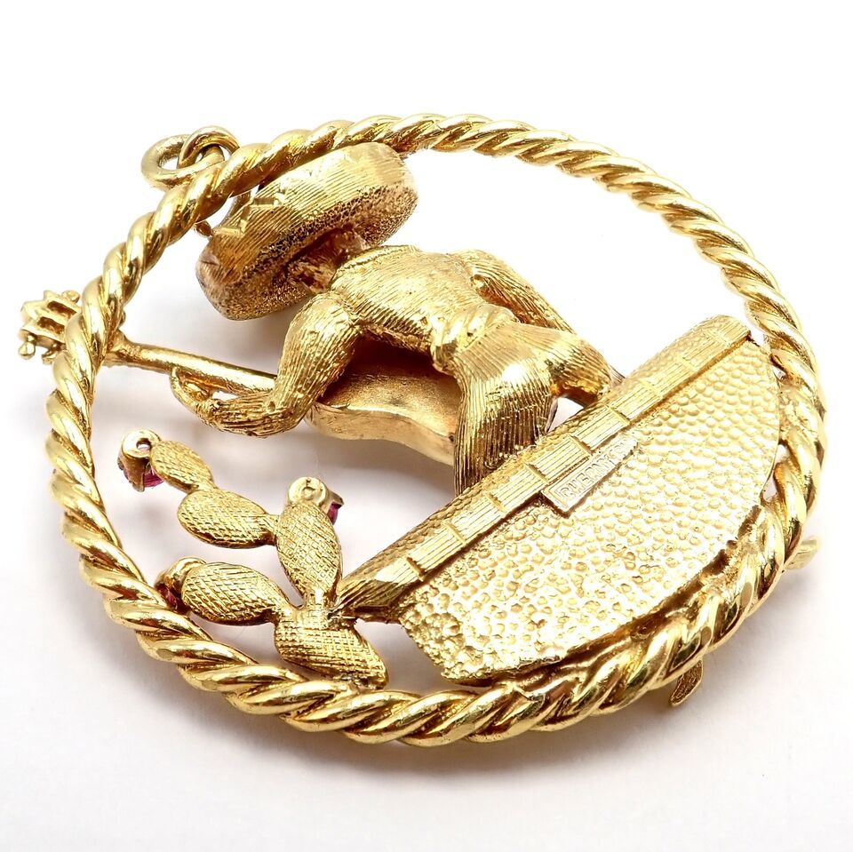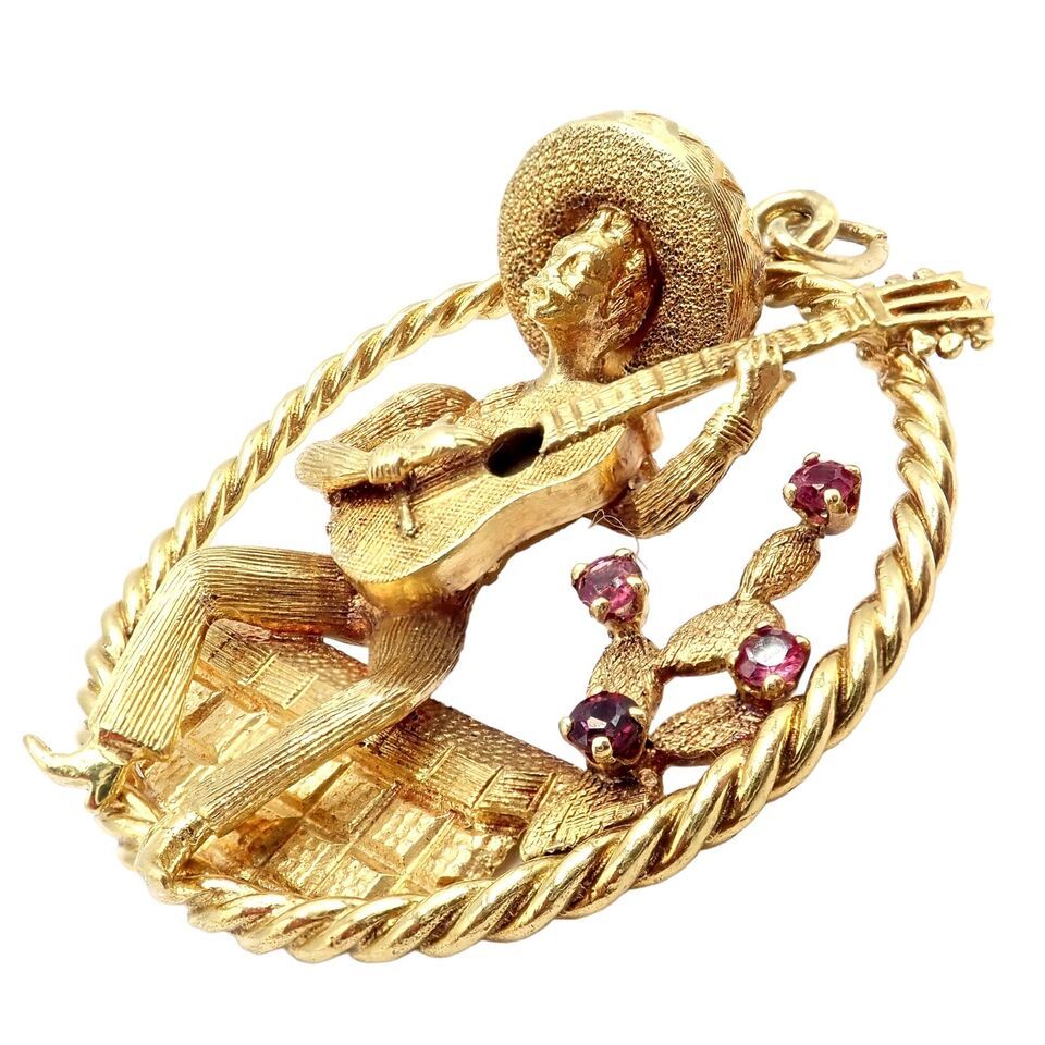 Authentic! Rudi Cherny 18k Yellow Gold Guitar Player Cactus Ruby Pendant