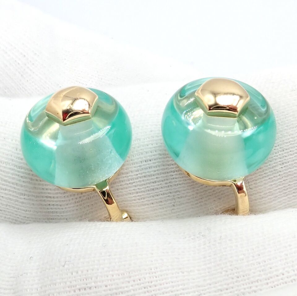 Authentic! Vintage Marina B 18k Yellow Gold Pneu Crystal Earrings