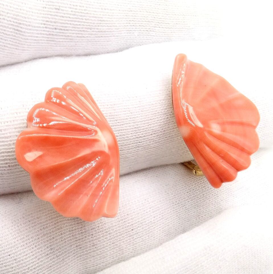 Authentic! Vintage Tiffany Co Cummings 18k Yellow Gold Coral Fan Earrings 1982