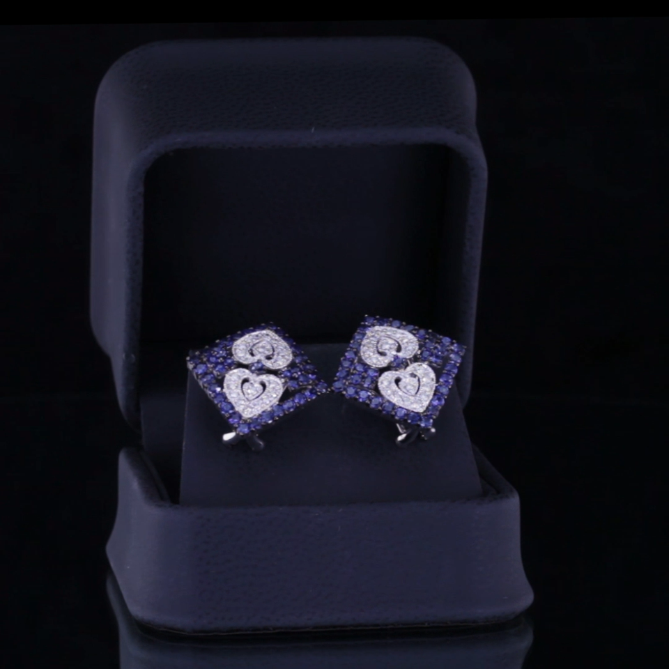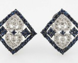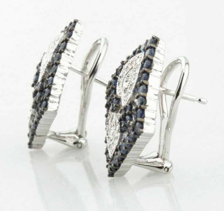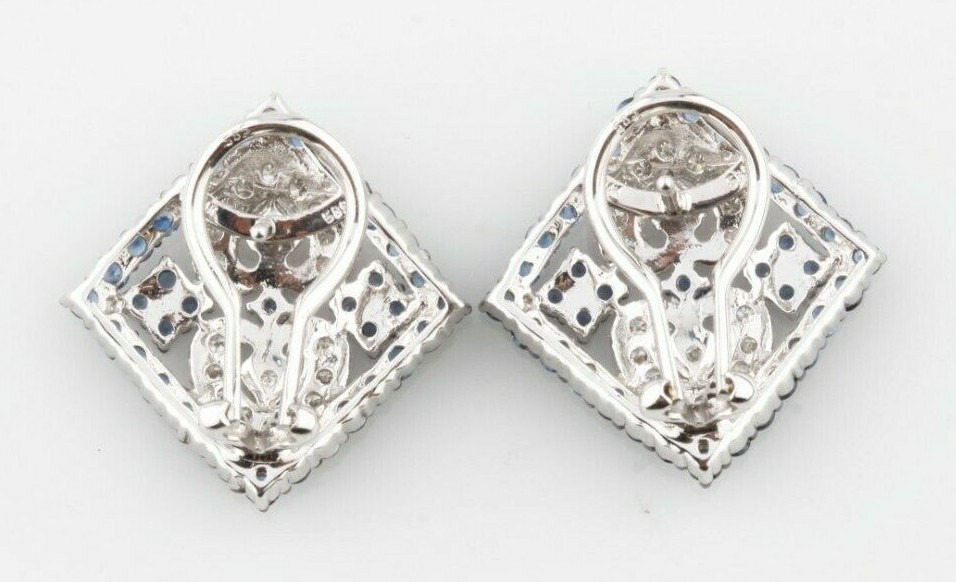 Gorgeous 14k White Gold Diamond and Sapphire Plaque Earrings TCW = 3 ct