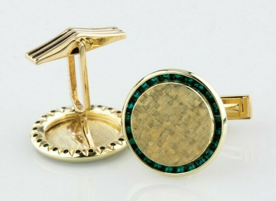 Lucien Piccard 14k Yellow Gold Tsavorite Garnet Cufflinks Nice!