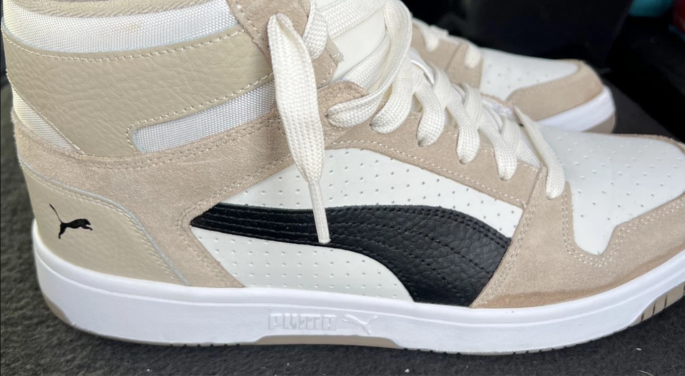 The Puma Rebound Layup Suede sneakers in beige are a stylish and comfortable option for men looking for casual athletic shoes.