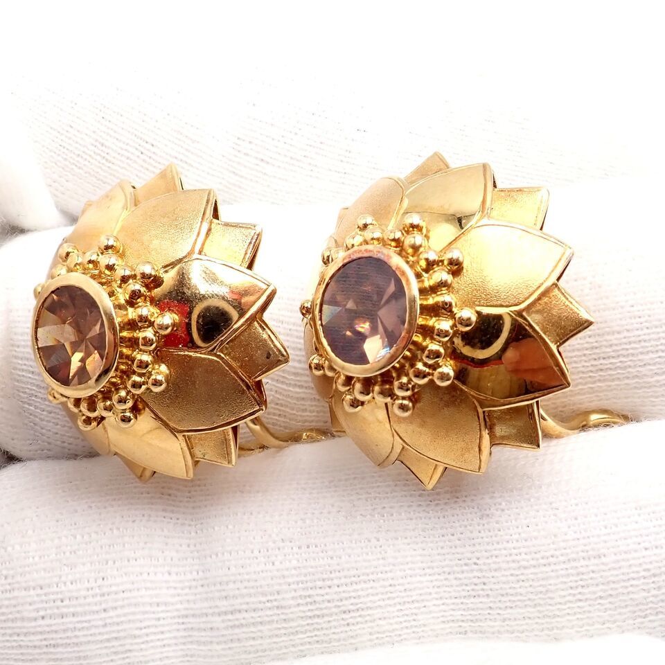 Rare! Vintage Paula Crevoshay 18k Gold Brown Zircon Round Flower Earrings OOAK