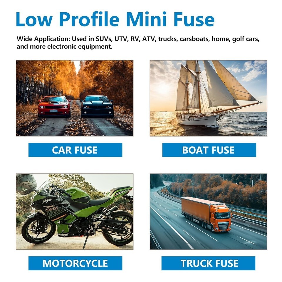 - Auto Car Blade Fuses Kit – 50 Pcs Low-Profile ATM Mini, 15A, 32V DC (Automoti...