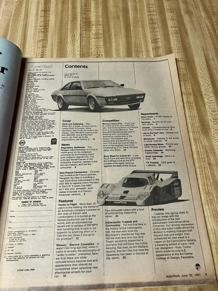 AutoWeek magazine Bitter SC cover June 1981 issue