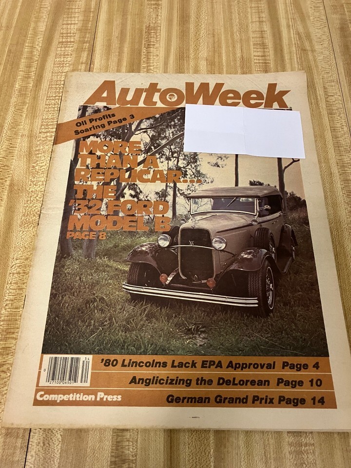 - AutoWeek magazine replicar 32 ford model B cover August 1979 issue