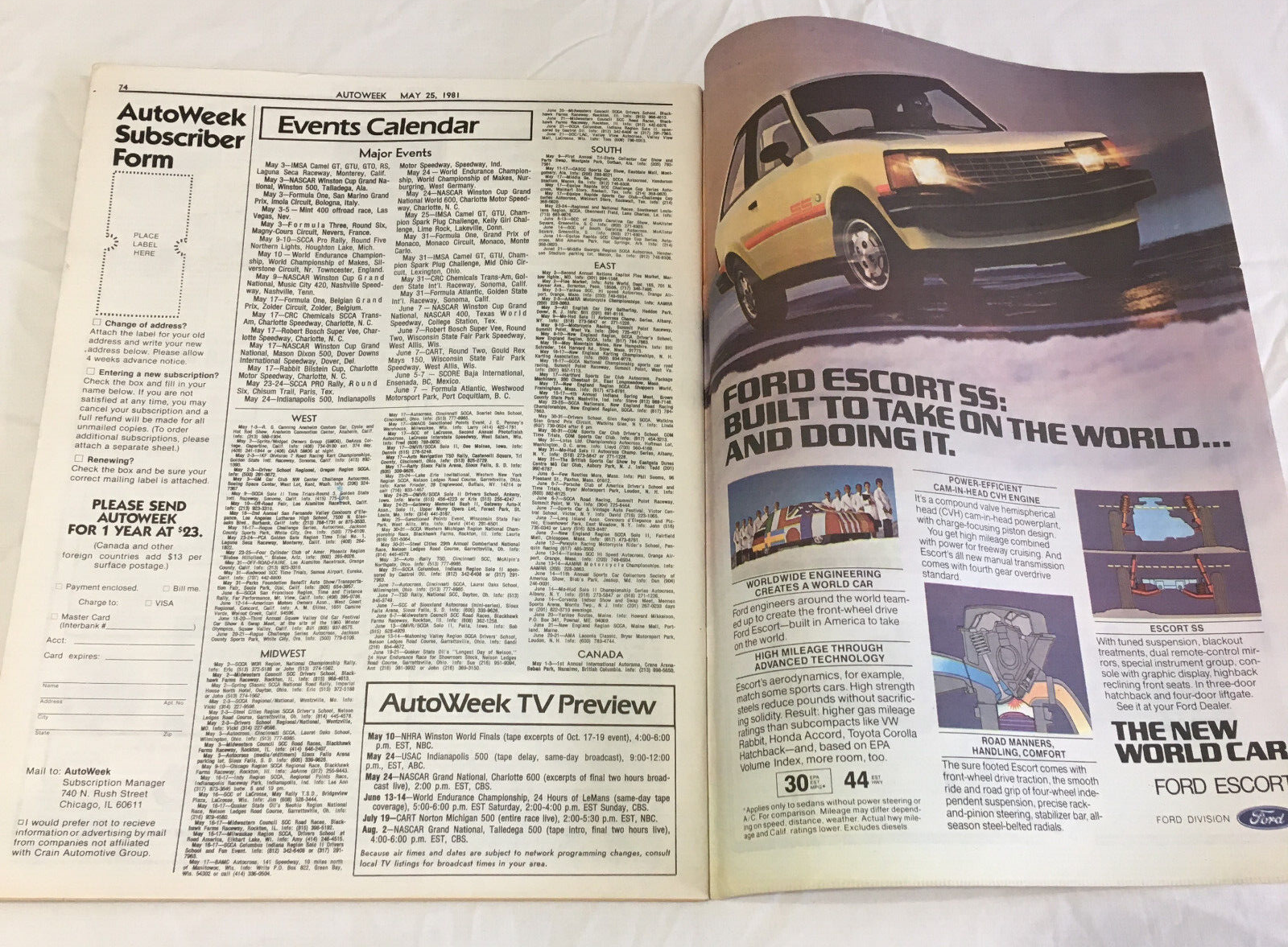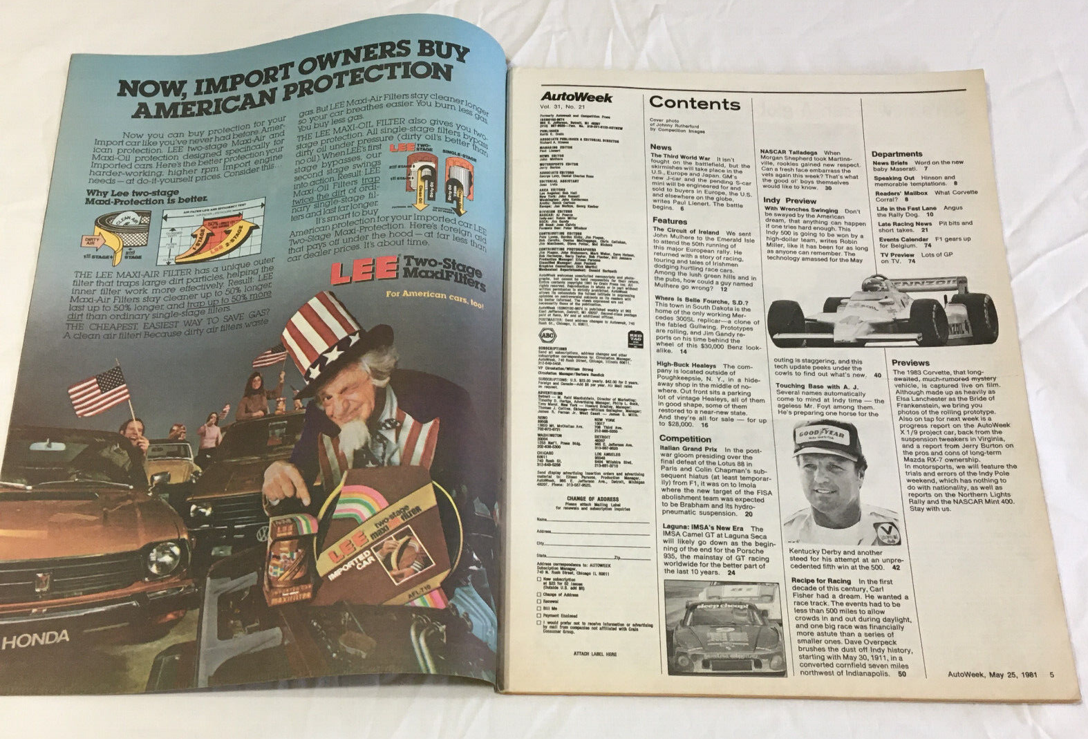 - AutoWeek magazine vintage issue May 25. 1981 Indy 500 preview