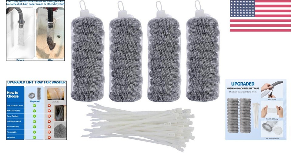 Automatic Lint Traps for Washing Machines - Stainless Steel & 40 Cable Ties