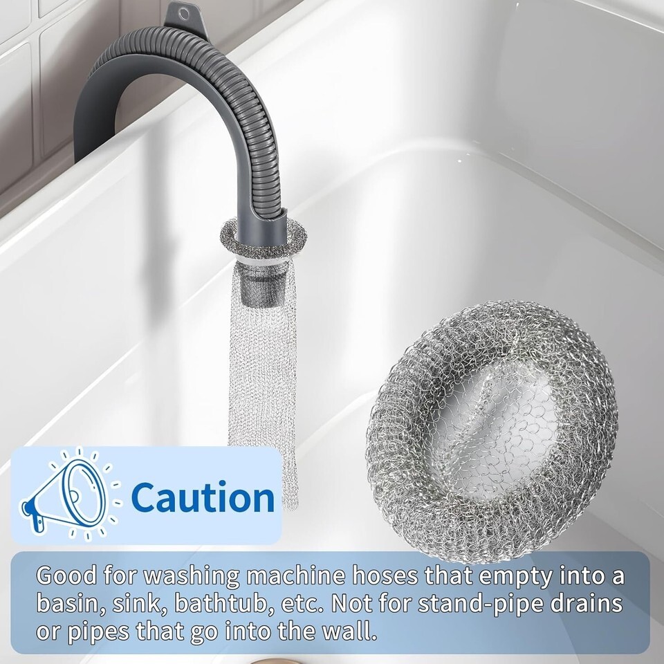 Versatile Usage: Ideal for hoses that empty into basins, sinks, bathtubs, and more, effectively capturing lint, hair, and other debris.