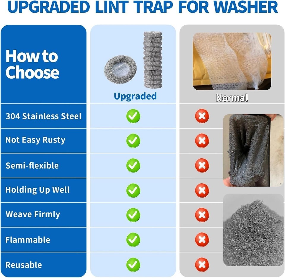 Durable Material: Constructed of stainless steel, these lint catchers are rustproof and built to last, ensuring long-term usage.