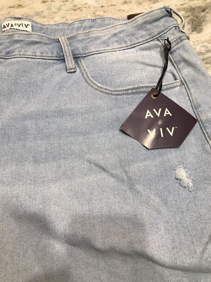 Take on your day with confident style in these Bermuda Jean Shorts from Ava Viv?. These regular-fit jean shorts are crafted from a soft fabric blend with a hint of stretch to offer you comfy wear and a flexible fit that moves with you. The fly hook and belt loops offer you a secure fit, while the multiple front and back pockets add functionality. Coordinate them with a relaxed, scoop-neck tee or a printed tank with sandals for simple and comfy wear.