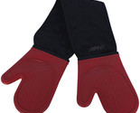 Pick up steaming hot plates and dishes with this oven glove to protect your hands from nasty burns. The two gloves are joined by a single piece of fabric. The long length of the oven glove will cover part of your arms to prevent burning when removing or placing items into a hot oven. This silicone oven glove will provide you with maximum protection and comfort. Heat resistant to 190 degrees C. For domestic use only.