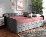 - Avery Gray Velvet Fabric Button Tufted Queen Size Daybed w/Trundle