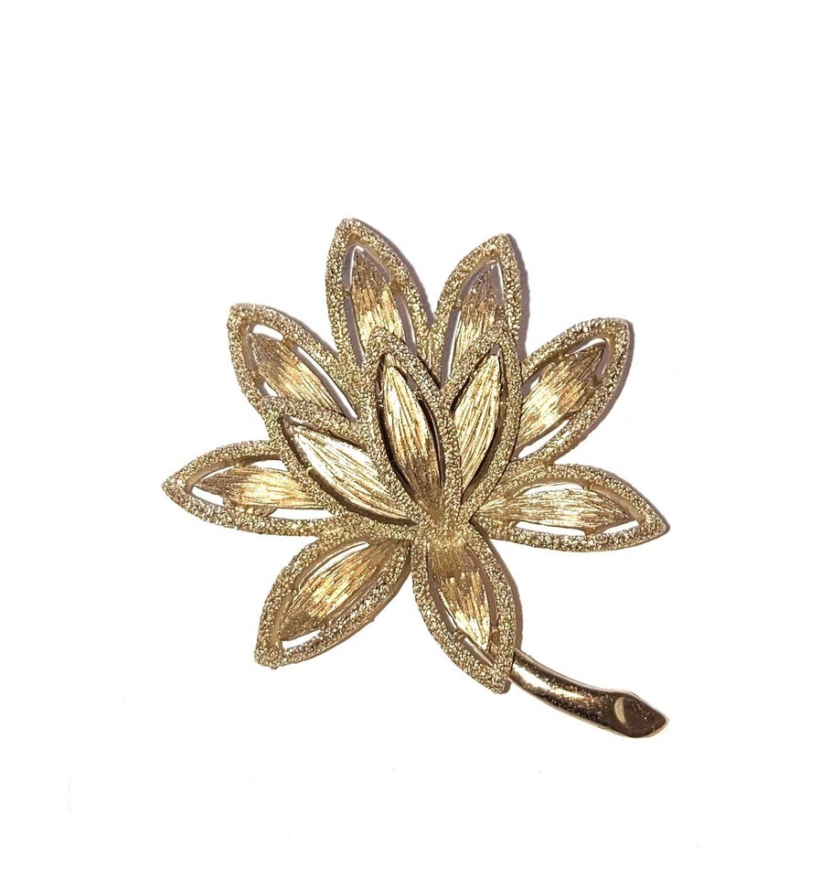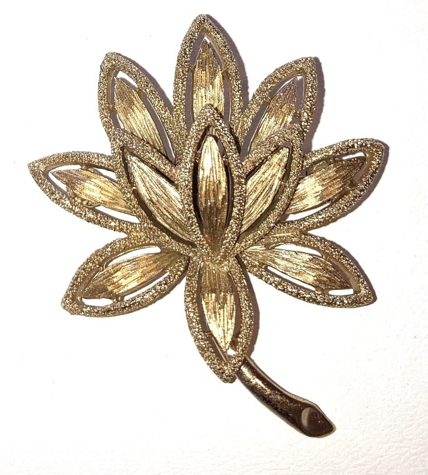 - Avon Brooch Pin Textured Gold Tone Leaf 2 1/2 inches wide Vintage