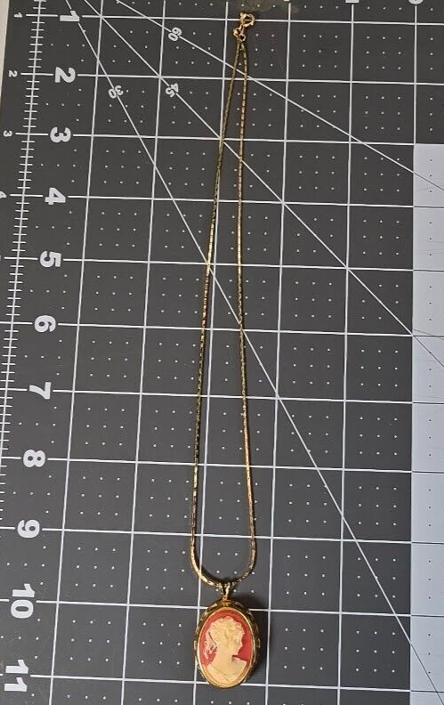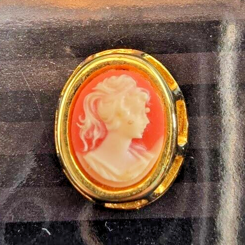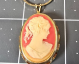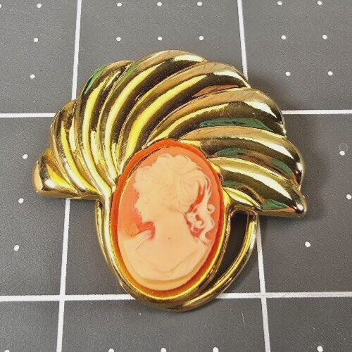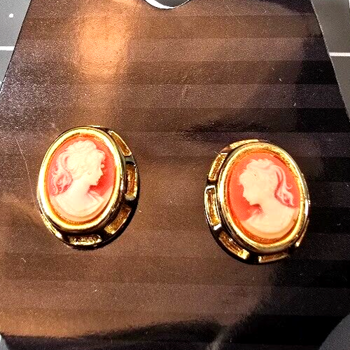 Avon Cameo Set Including Necklace Earrings Scarf Clip Peach Background