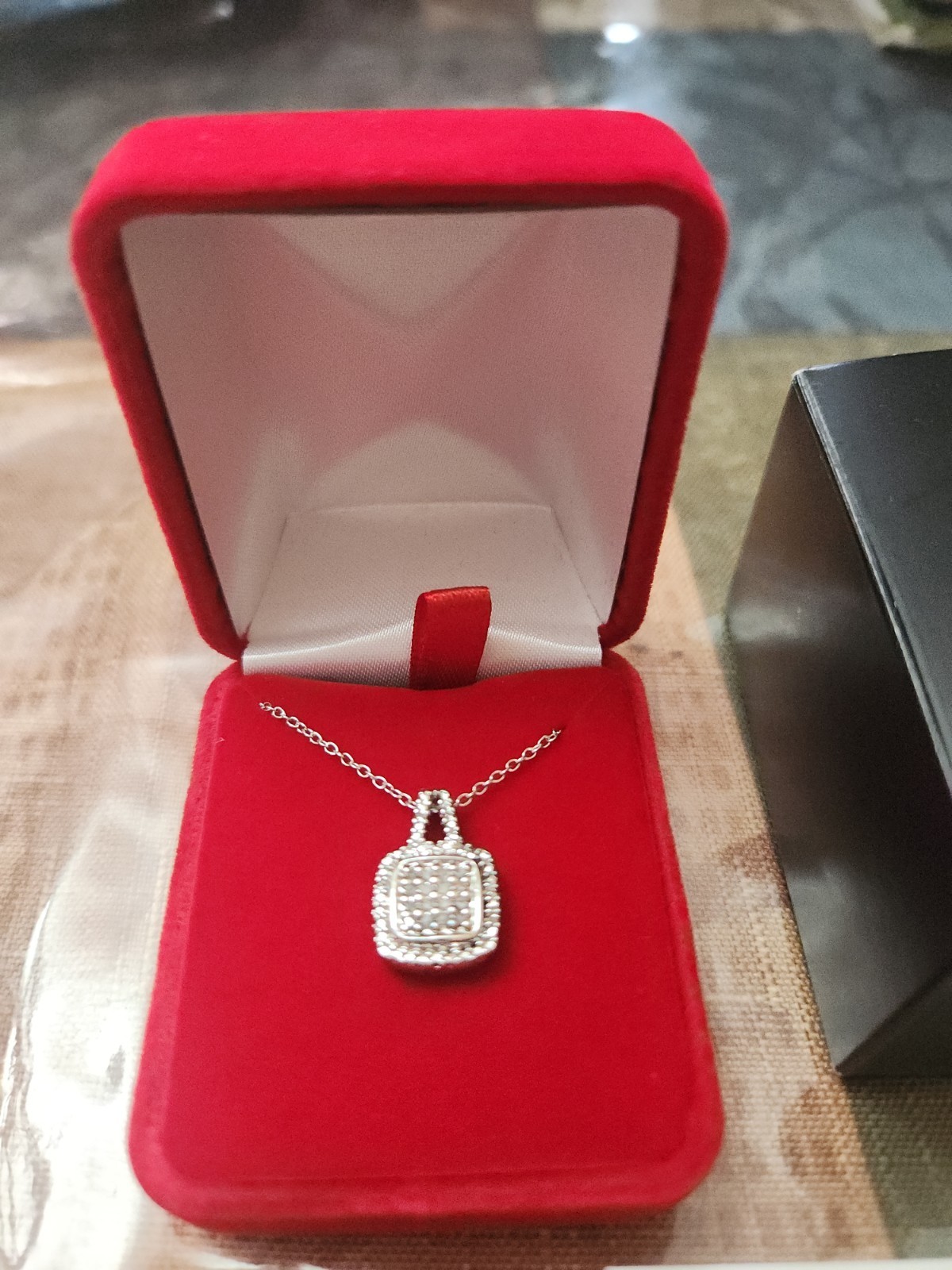 - Avon Silver Tone 1/10ctw Pave Diamond Pendant Necklace Chain Vintage