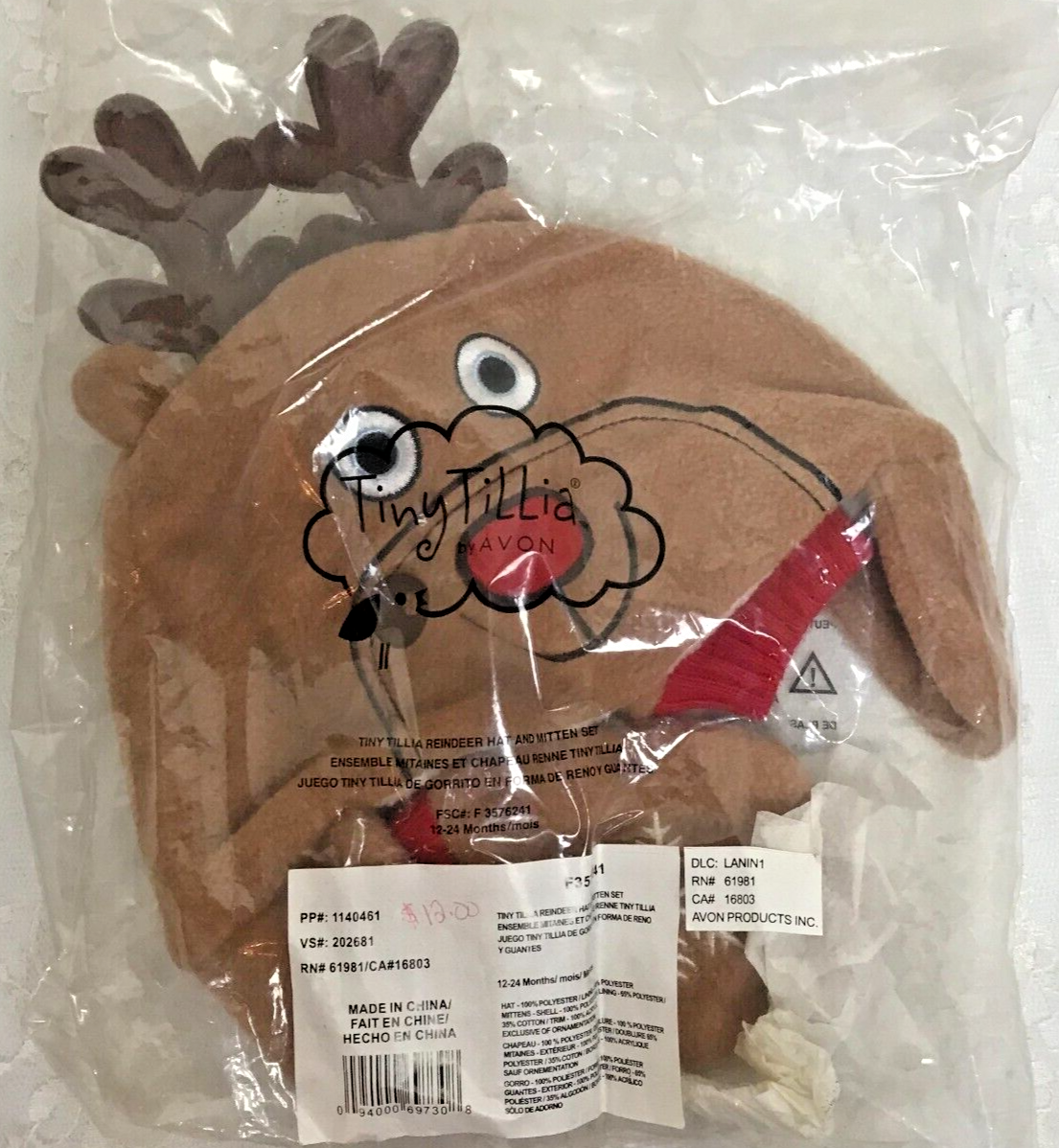 - Avon Tiny Tillia Reindeer Hat and Mitts Retired 12-24 Months