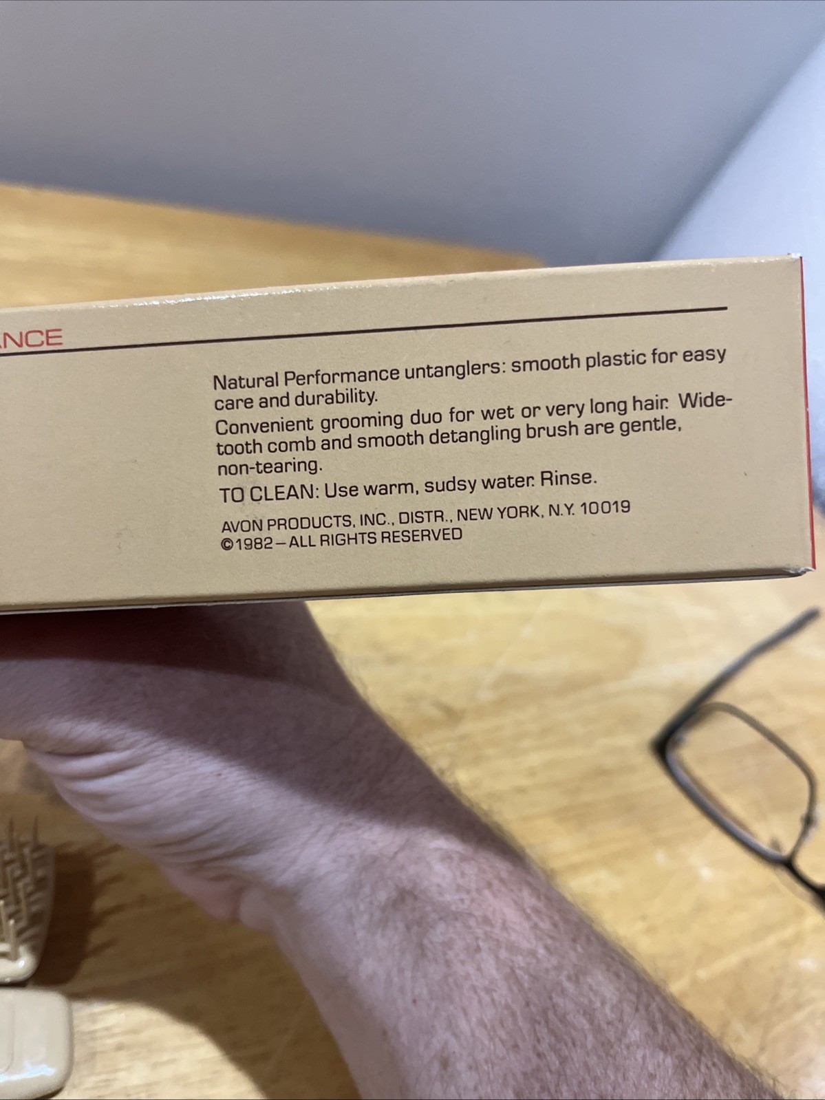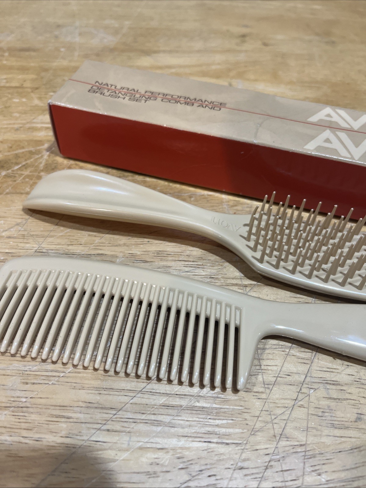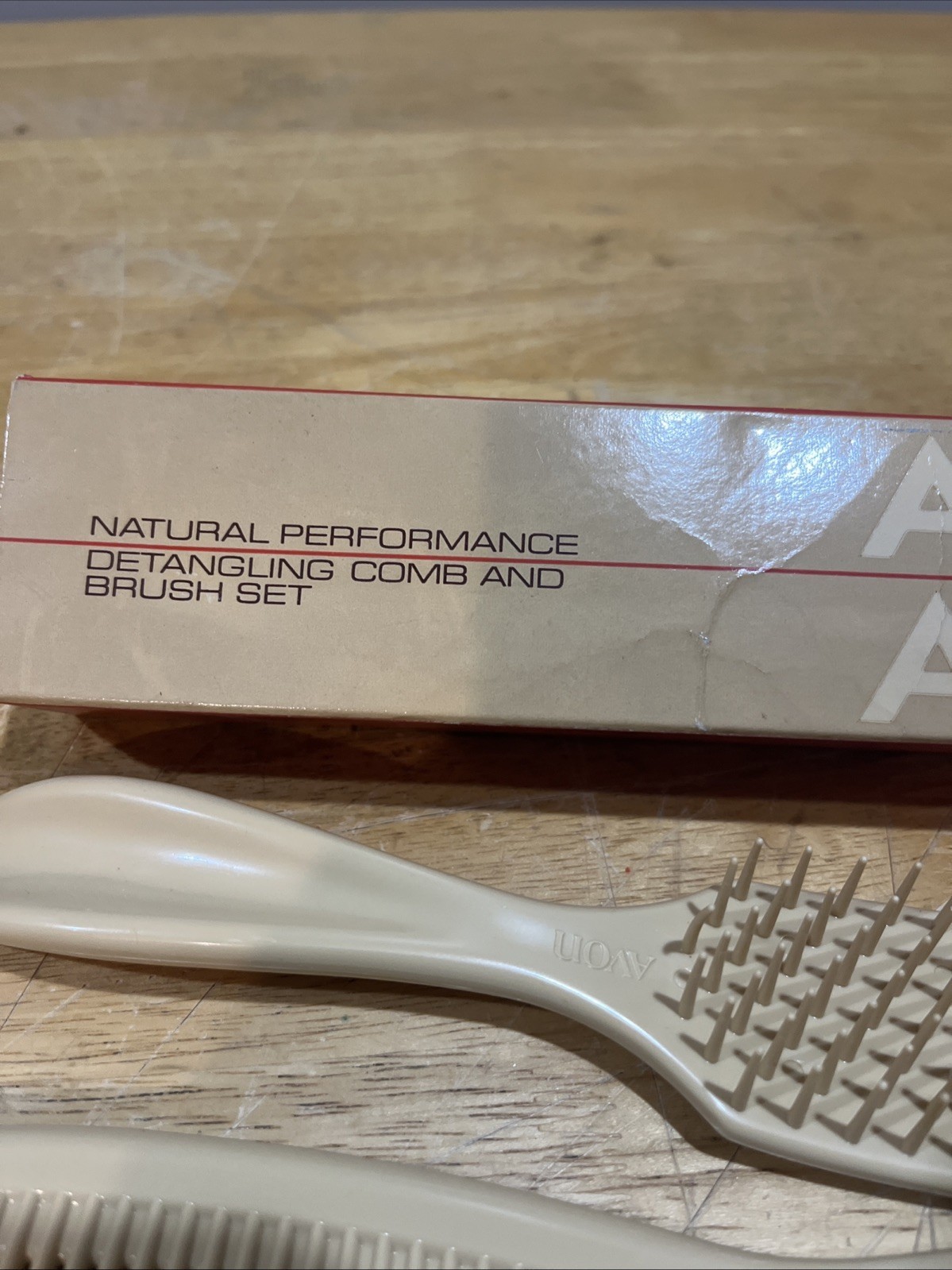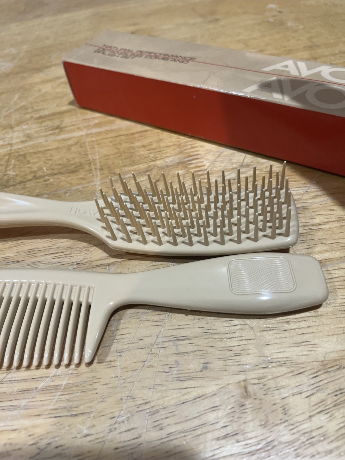 - Avon Vtg Natural Performance Detangling Comb And Brush Set Tan 1982 NOS