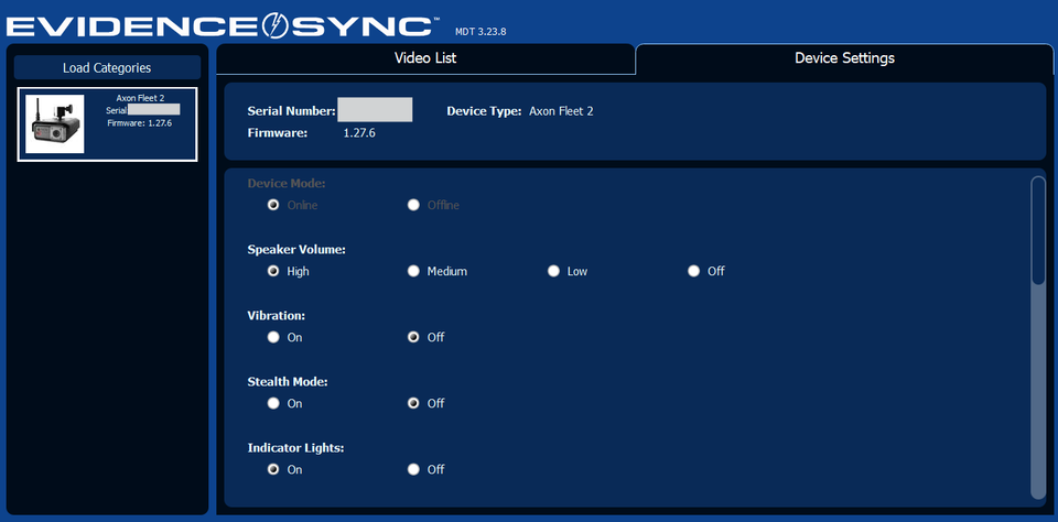 Cleaned and disinfected. Has been tested to connect with the Axon Evidence Sync Windows app and view recorded videos. Usage wear as shown in the pictures. Only the Axon Fleet 2 AX1014 Camera With Mount are included in this listing.