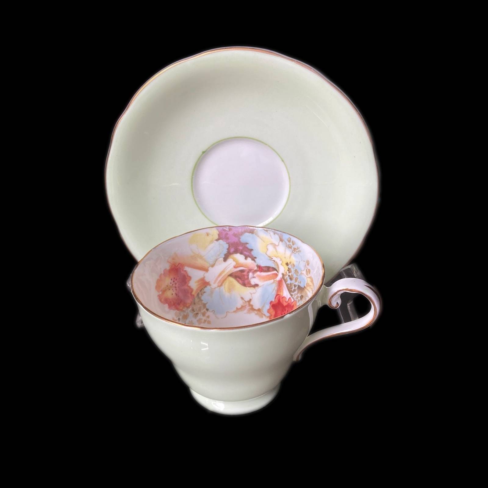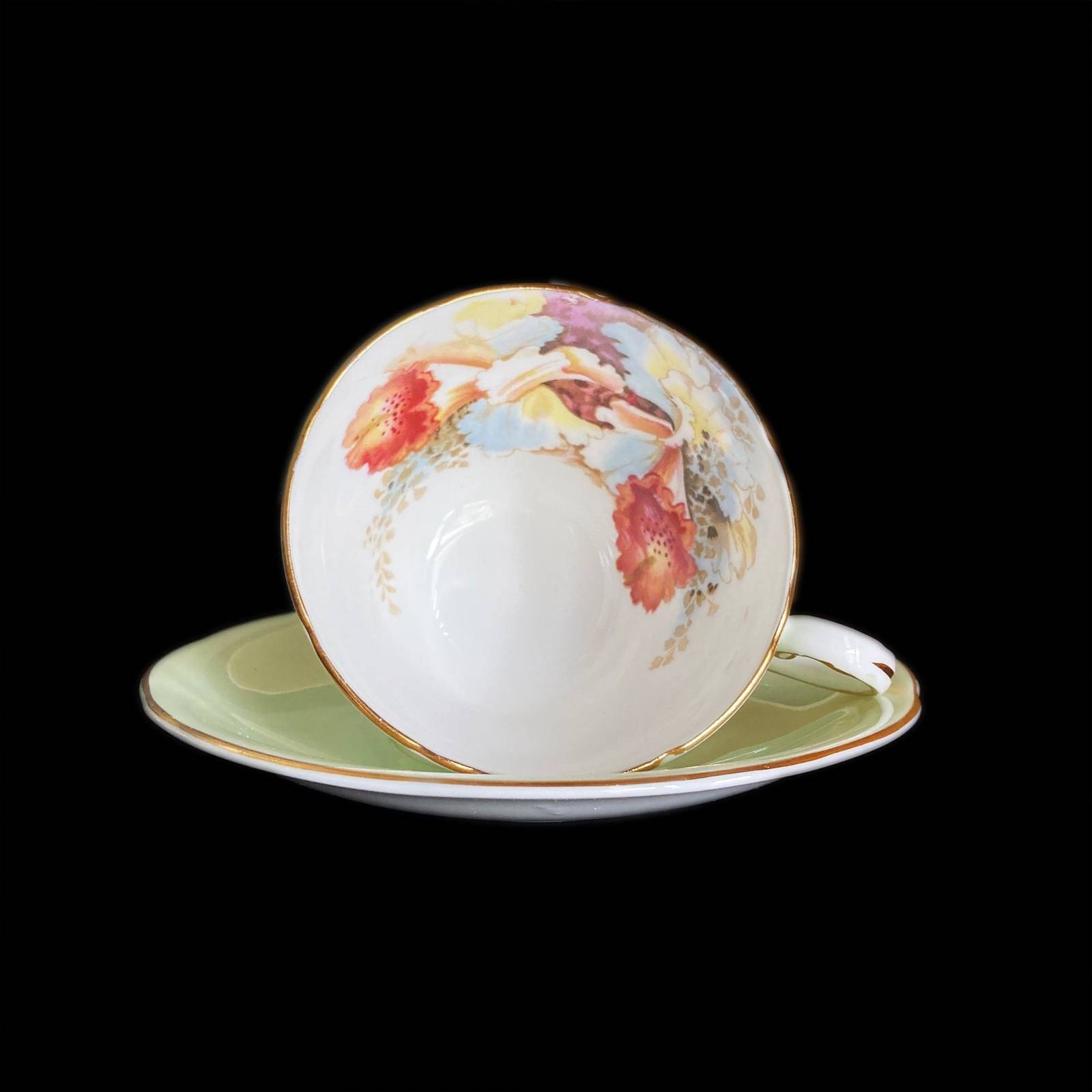 - Aynsley Cup and Saucer Light Green with Floral Design 1930s