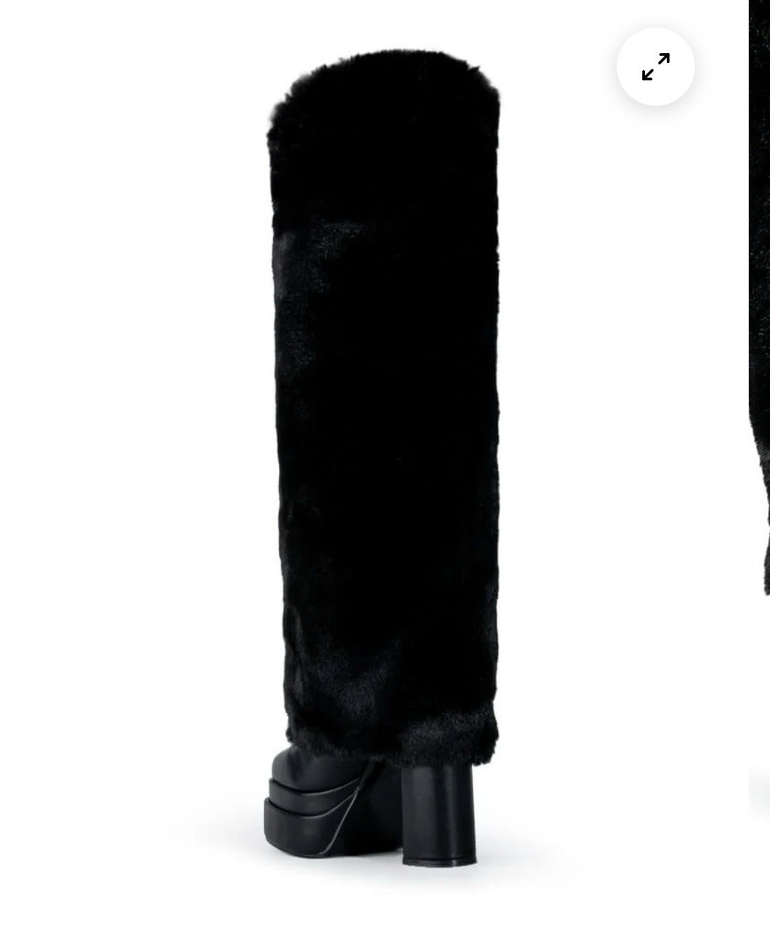 The AZALEA WANG Coco Faux Fur Fold Over Boot in Black. This statement-making shoe features a vegan leather boot base, a knee high shaft, a fold over faux fur panel, and a slightly covered chunky heel. Complete with a squared toe, platform sole, and slip-on fit.