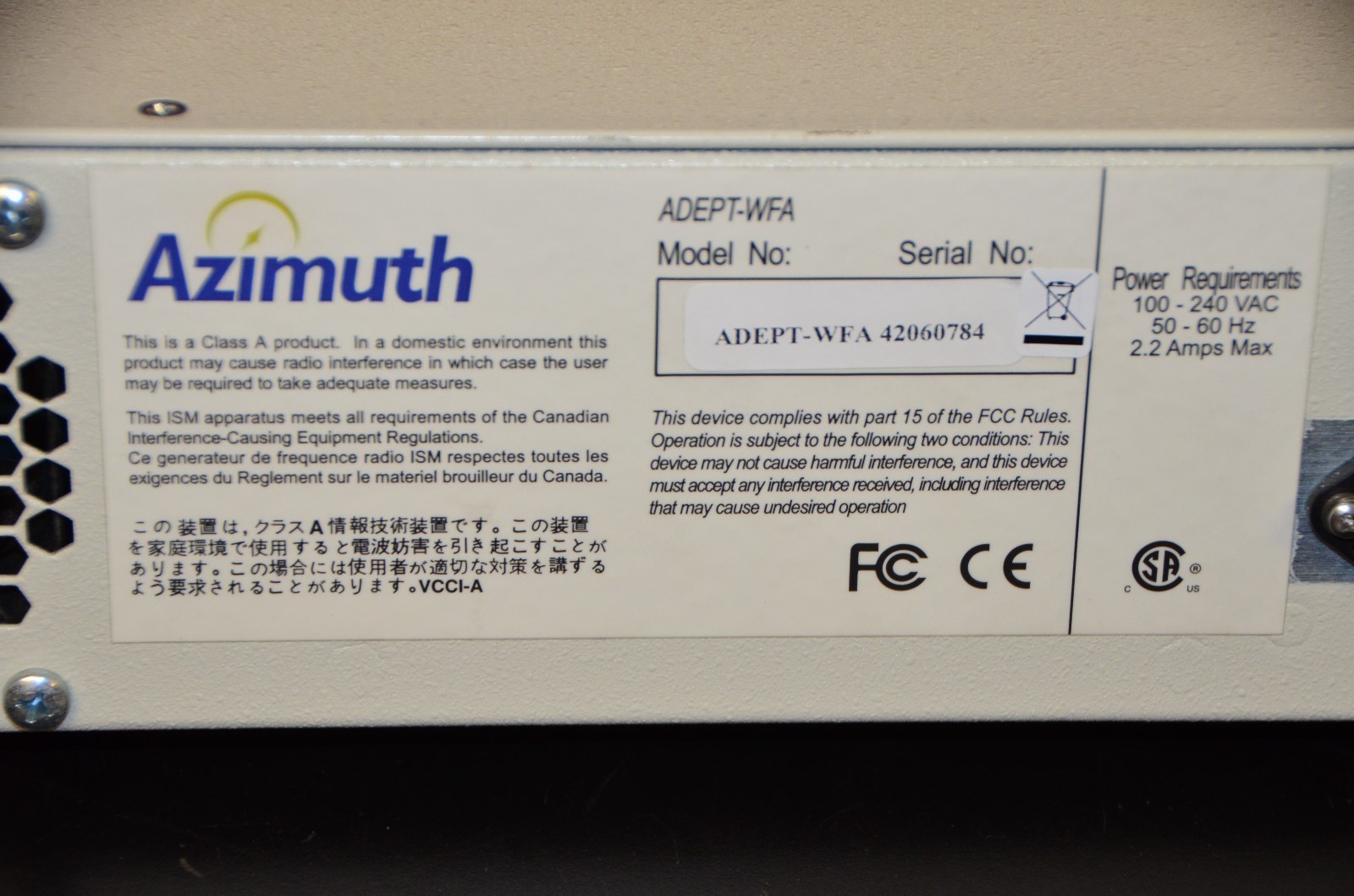This Azimuth Adept-WFA Wi-Fi Alliance Certi?cation Test Instrument is in great condition and was removed from a working environment. This unit came from a large wireless communication manufacturer that was upgrading equipment and was in use prior to removal. We guarantee this unit to be fully functional with a 30 day return policy. We urge customers to view all photos as they show overall condition, included accessories and useful information. Please feel free to contact us with any questions.