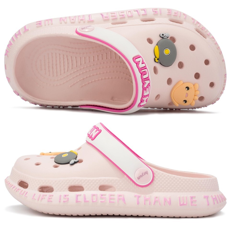 CUTE UNIQUEThe solid colors covered with Cartoon anime patterns makes these little kids clogs look like different and lovely.The unique design of the upper can effectively accelerate air circulation and keep the sandals dry.