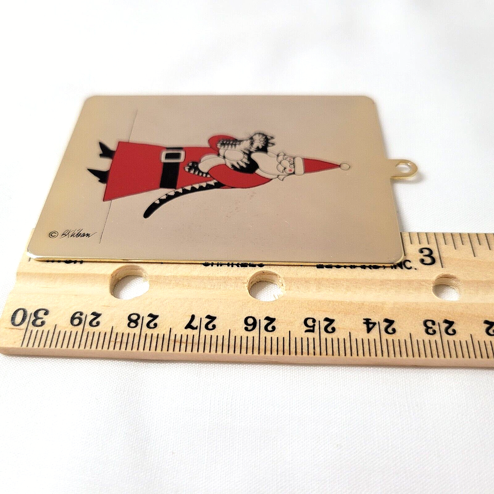 - B. KLIBAN Cat with Santa / St Nicholas Vintage Brass Metal Ornament HARD TO FIND