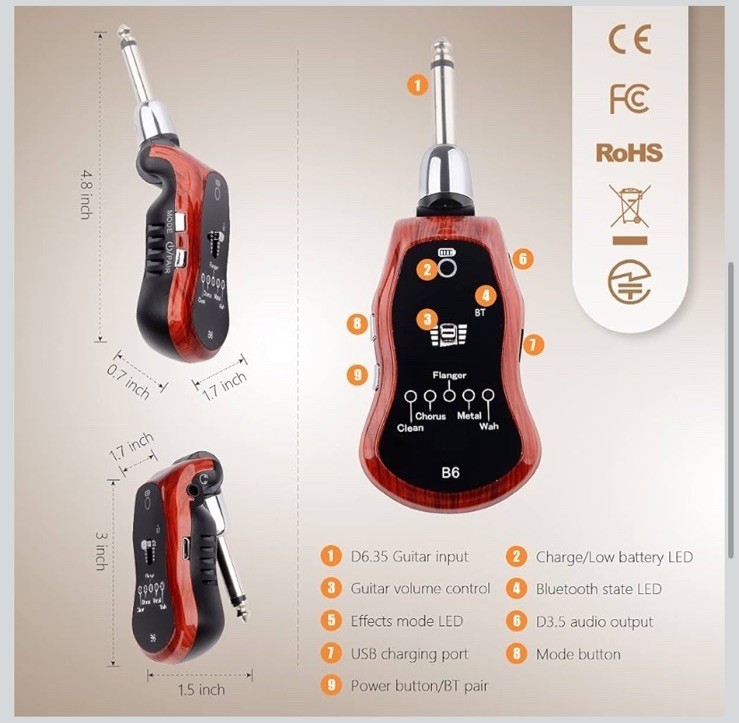 - B6 Guitar Headphone Amp Mini Plug Guitar Amplifier Bluetooth Guitar With5 Effect