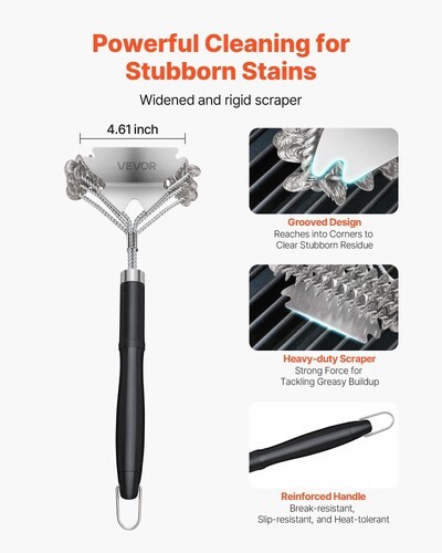 Efficient Cleaning Power: With a wide, heavy-duty scraper and 3-row steel wire design, this grill brush and scraper removes stubborn grease and food residue. Clean more areas in less time, saving you energy and enhancing your cleaning efficiency