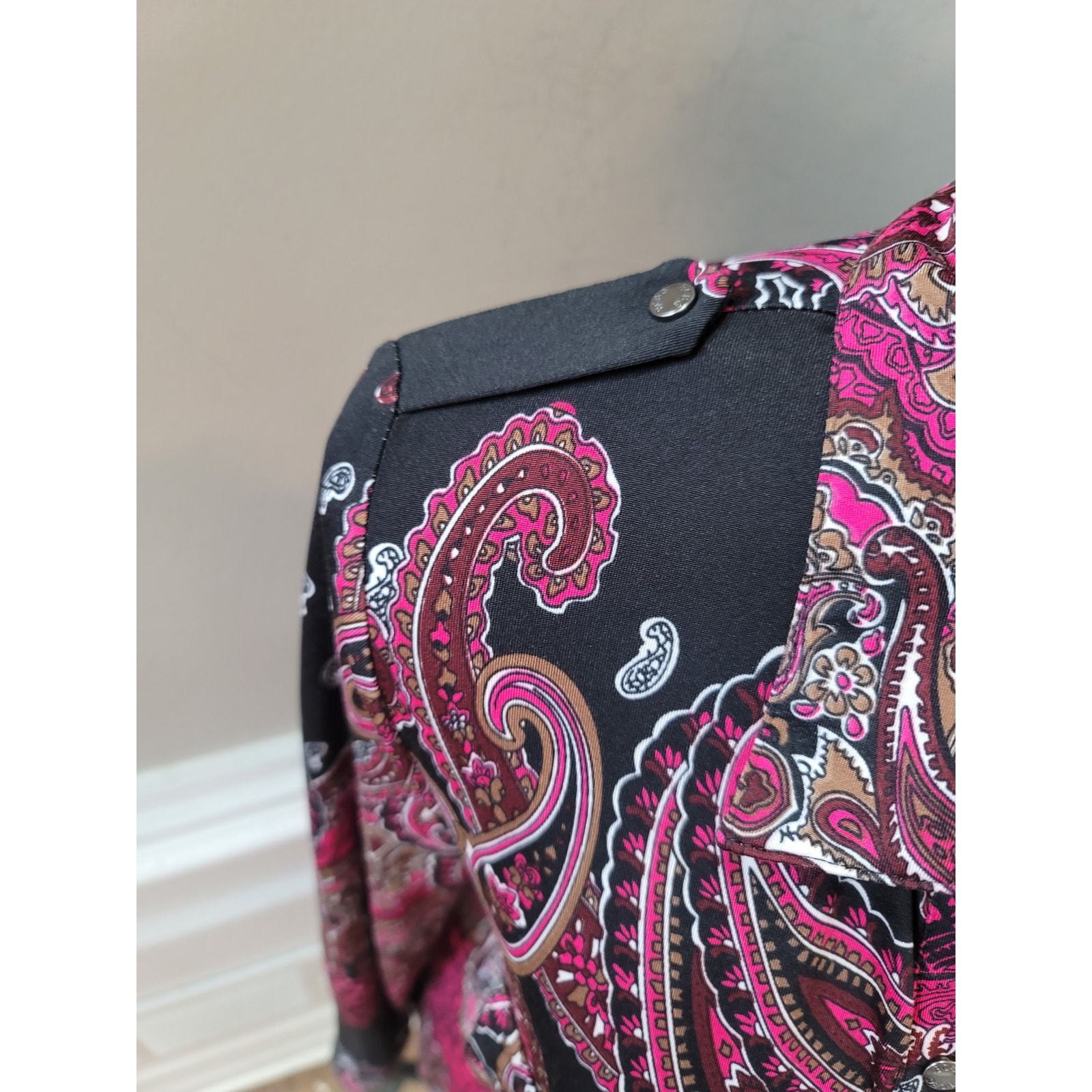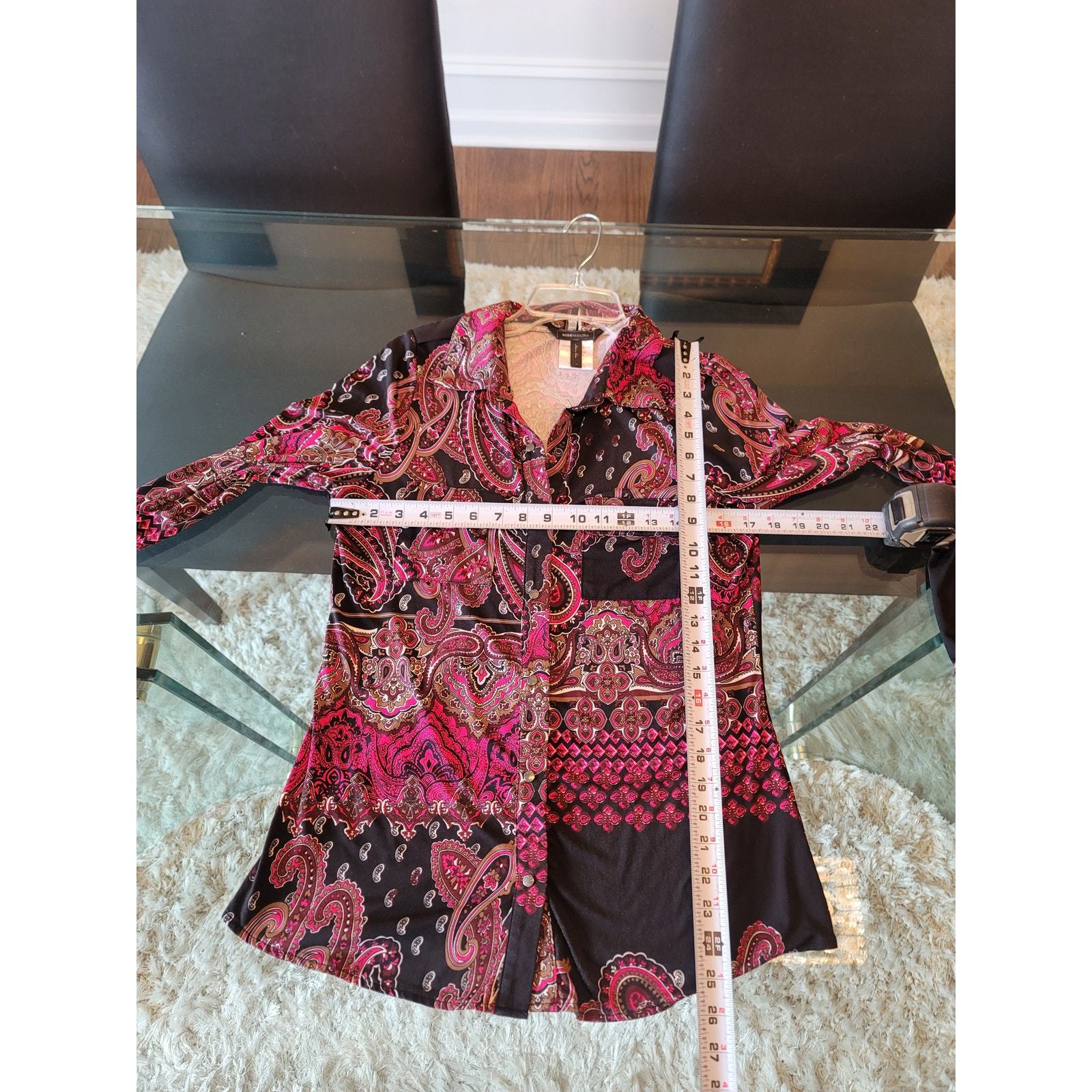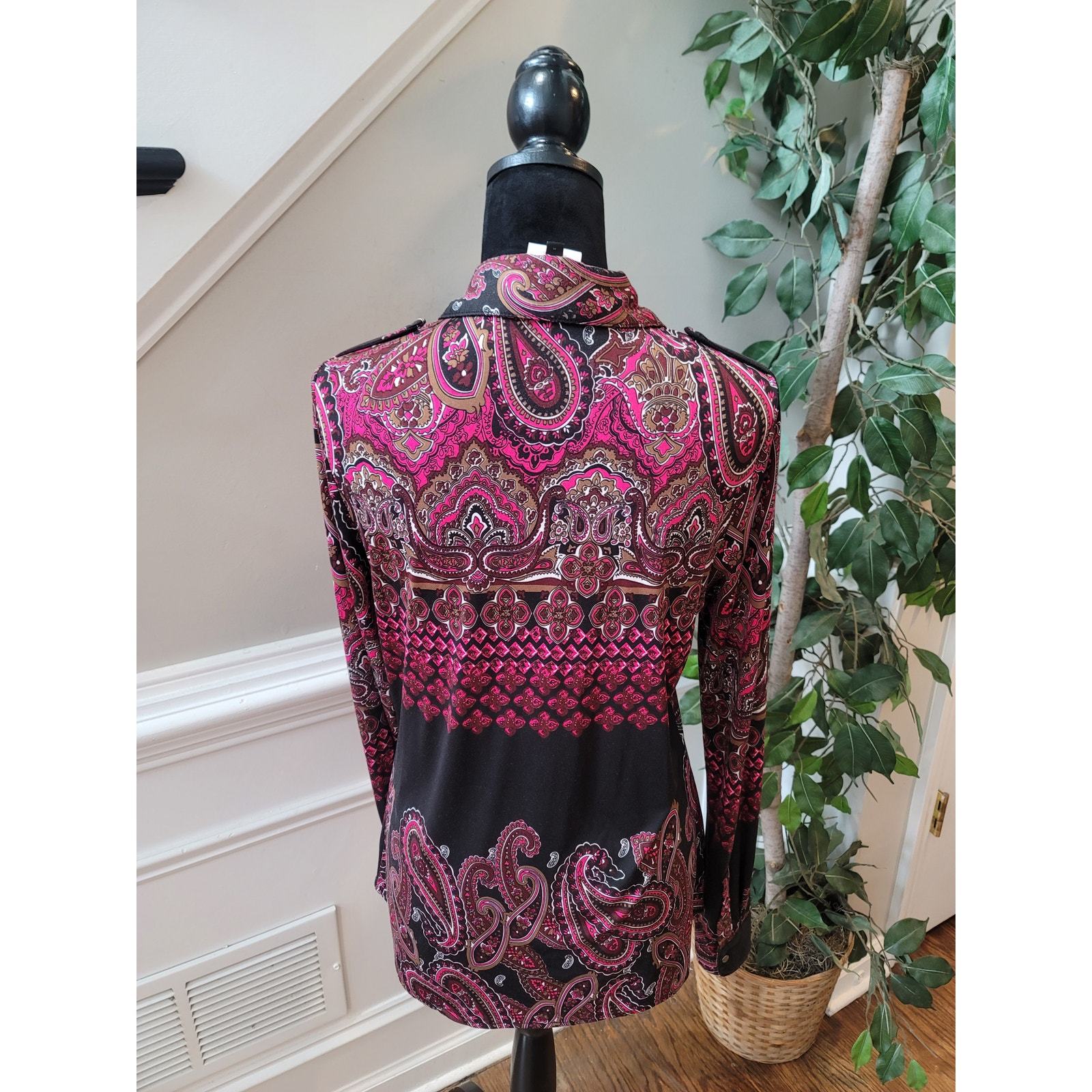 - BCBG Max Azria Blouse Women's Medium Black Pink Paisley Print Long Sleeves