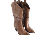 BCBGeneration Women's 8B Brown Leather Slouch Western Boots Mid-Calf 3" Heel