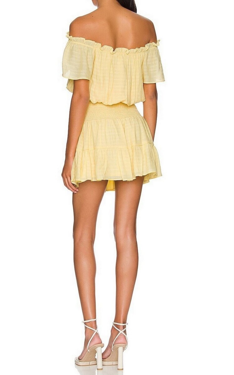 BCBGeneration Women's Off-The-Shoulder Fit and Flare Mini Dress Yellow Size M, L
