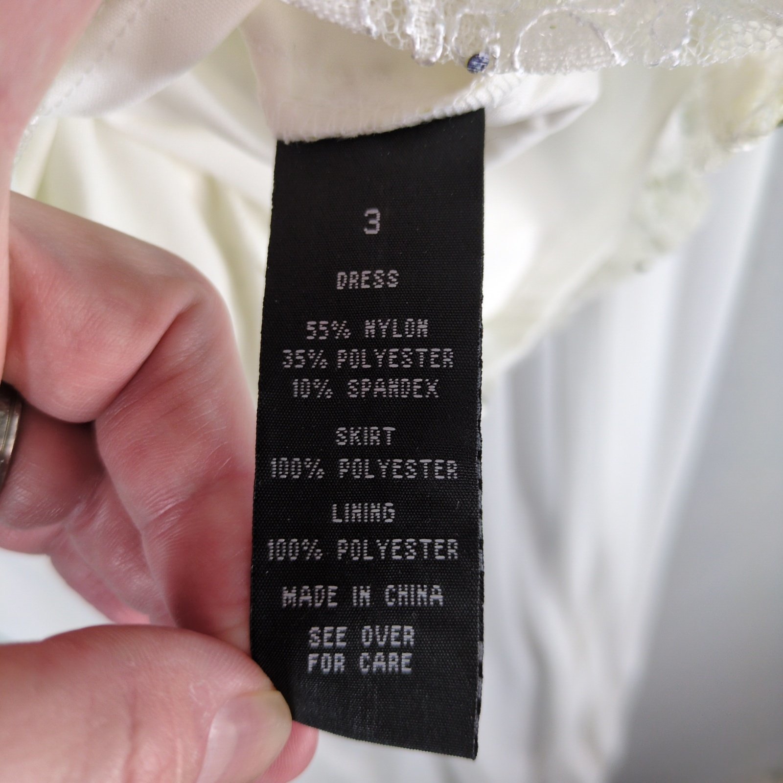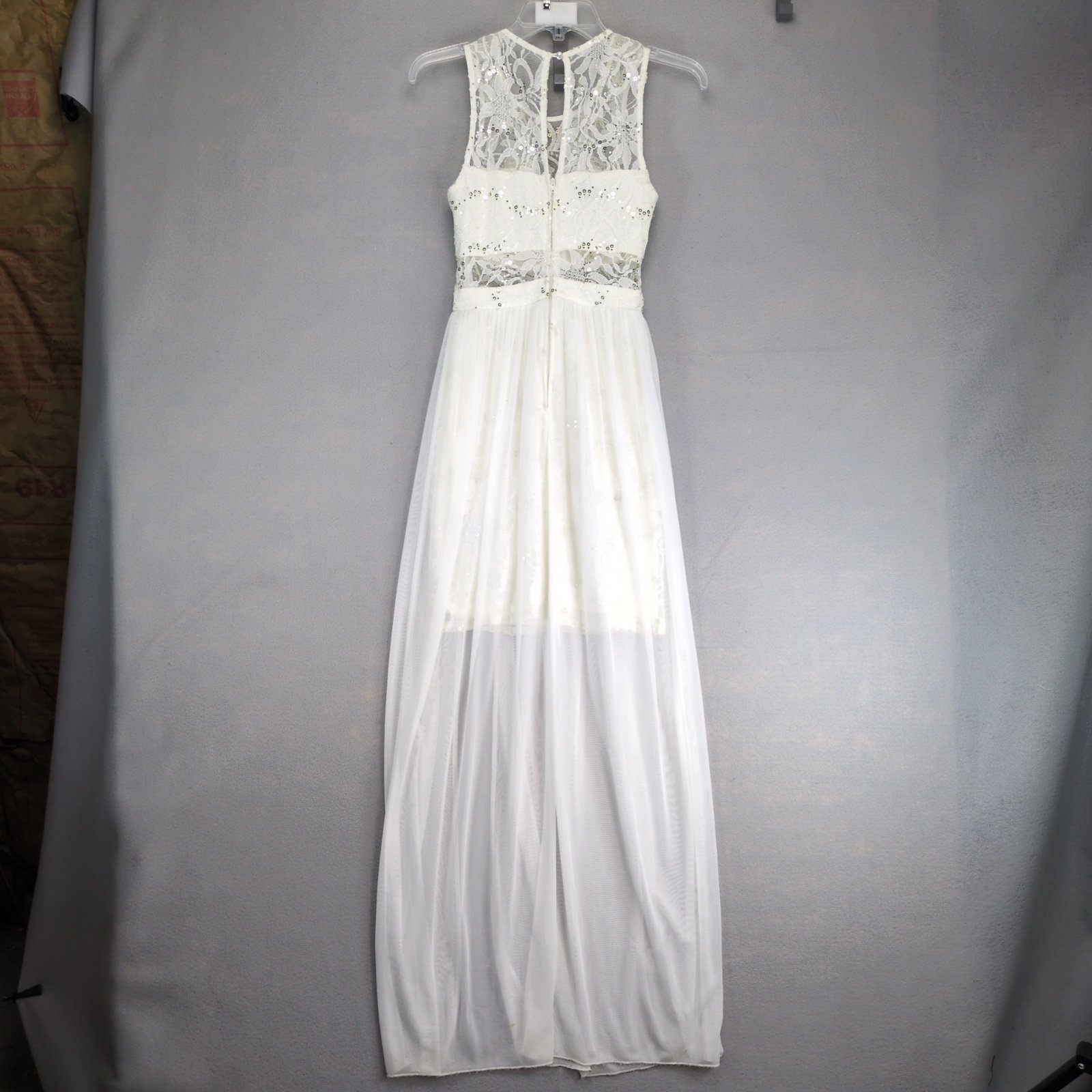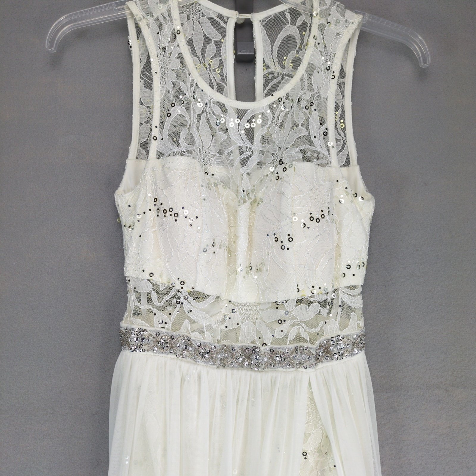 - BCX Sheer Lace Overlay Off-White Dress Sz 3 Juniors Sleeveless Sequin Split Prom