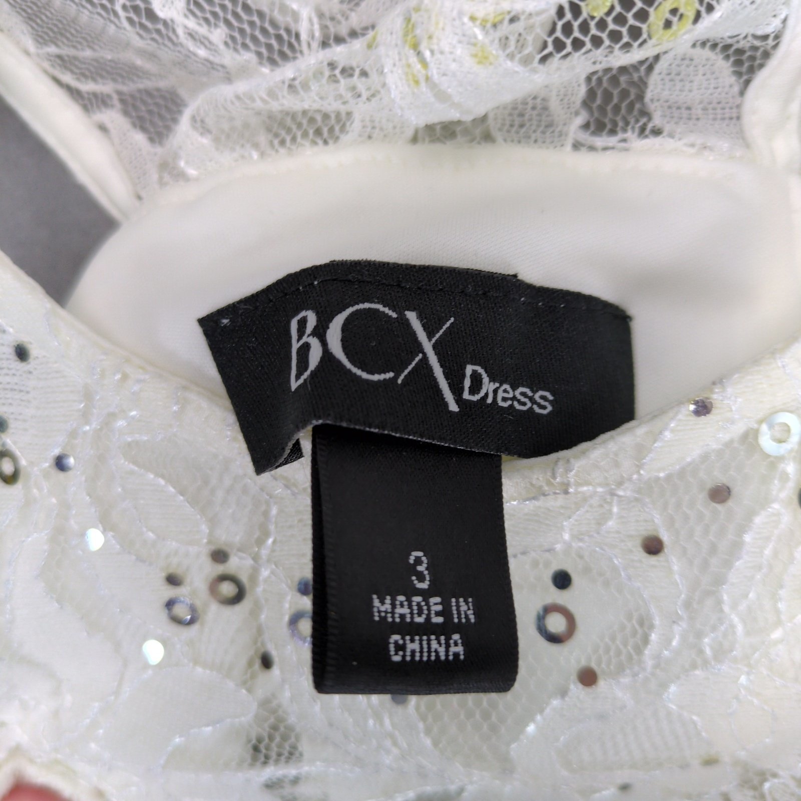 BCX Sheer Lace Overlay Off-White Dress Sz 3 Juniors Sleeveless Sequin Split Prom