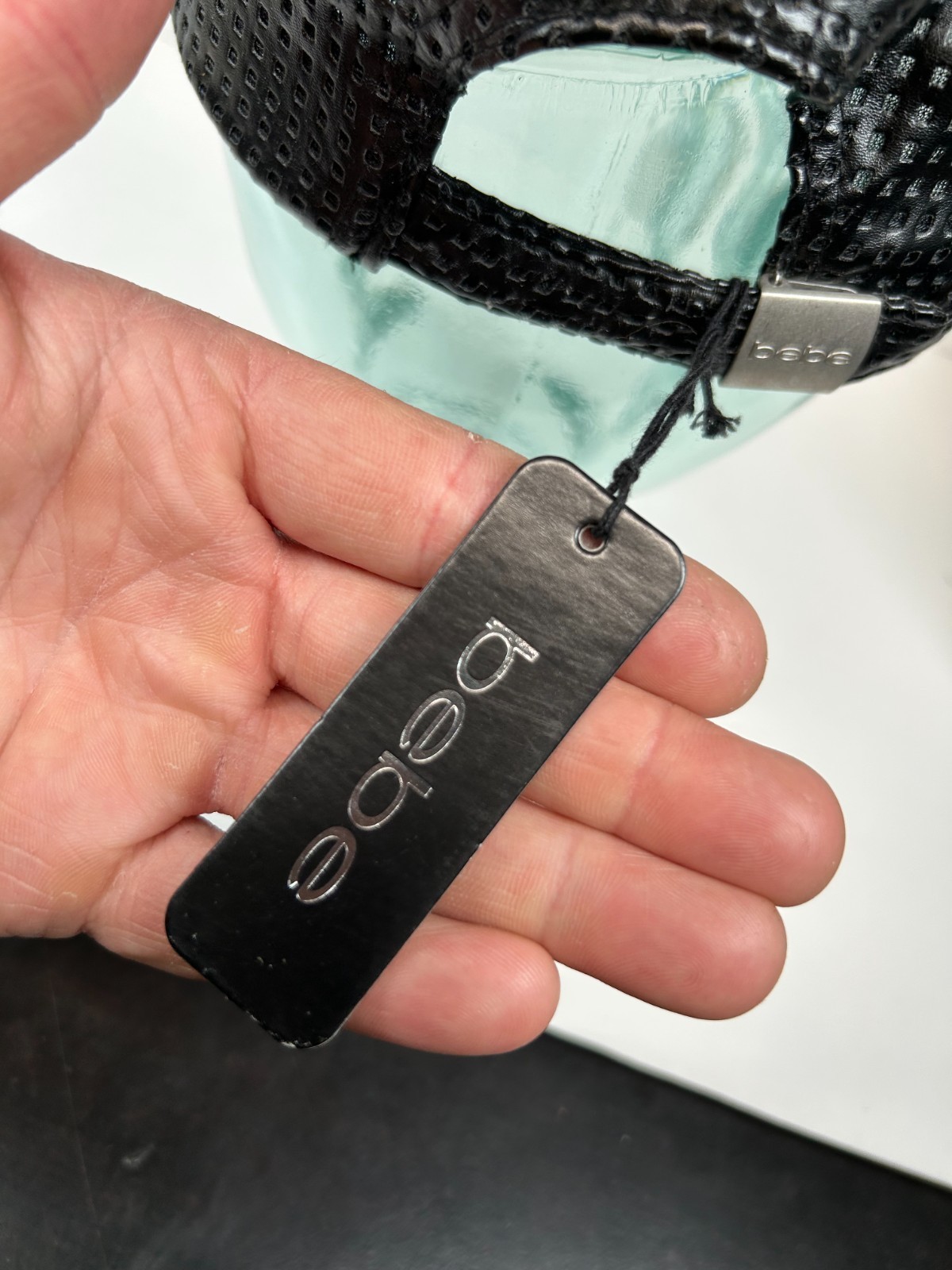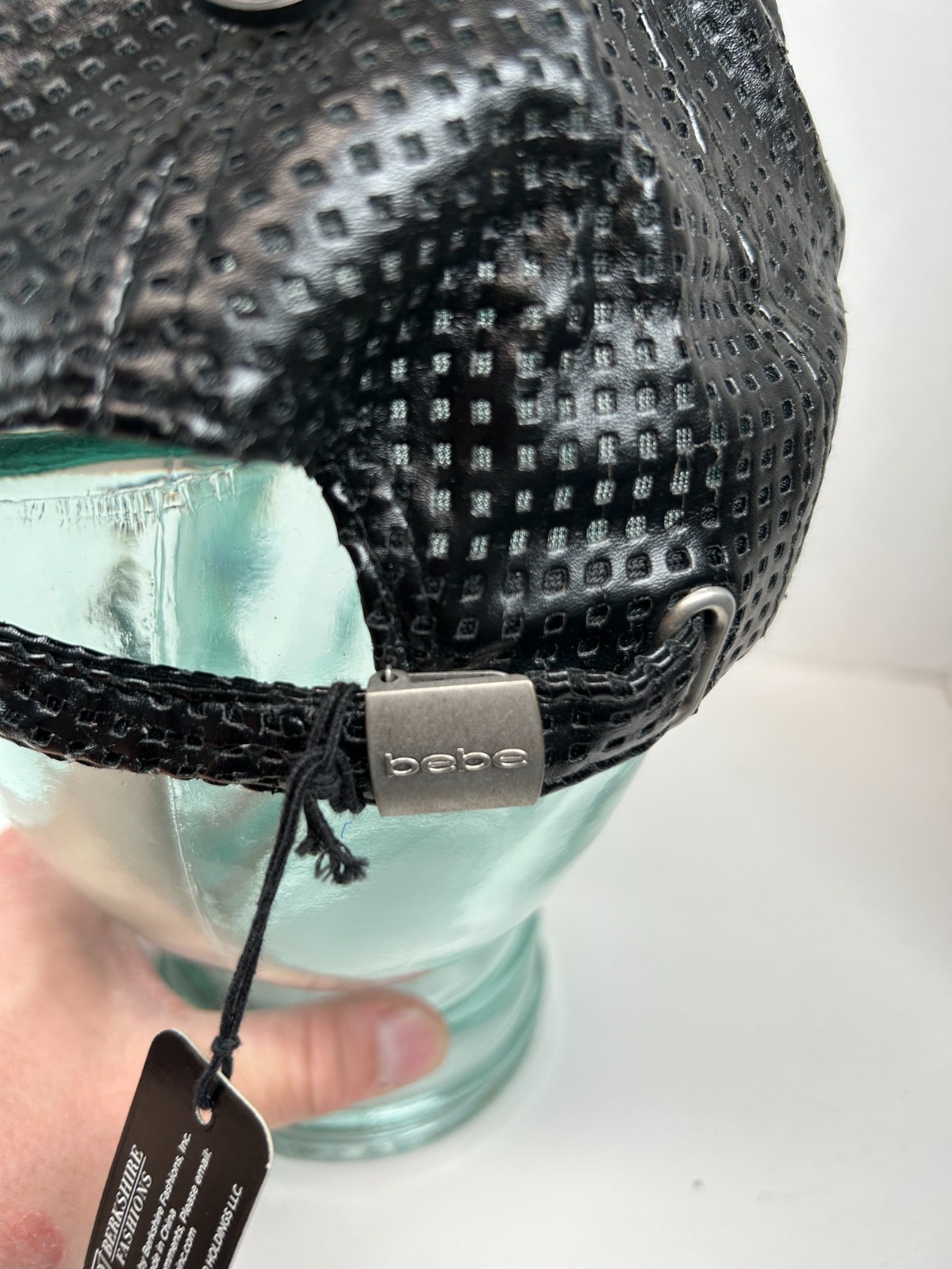 - BEBE Womens Faux-Leather Strap Back Adjustable Hat Cap, Blk - Big Logo Berkshire