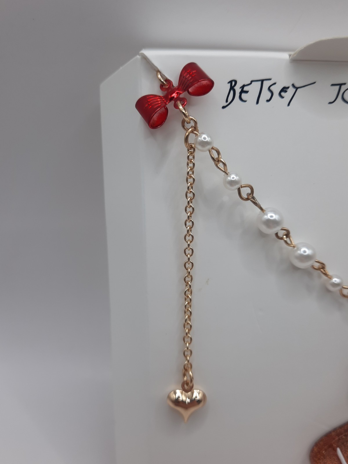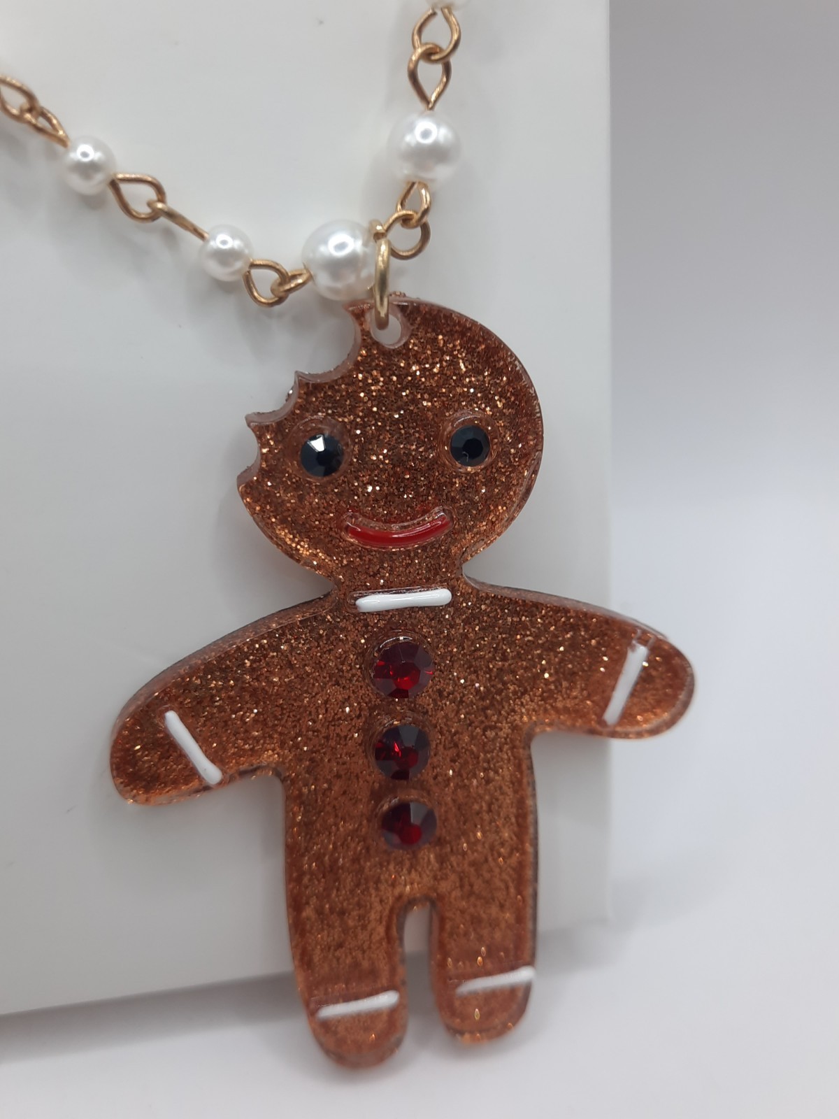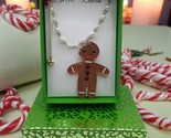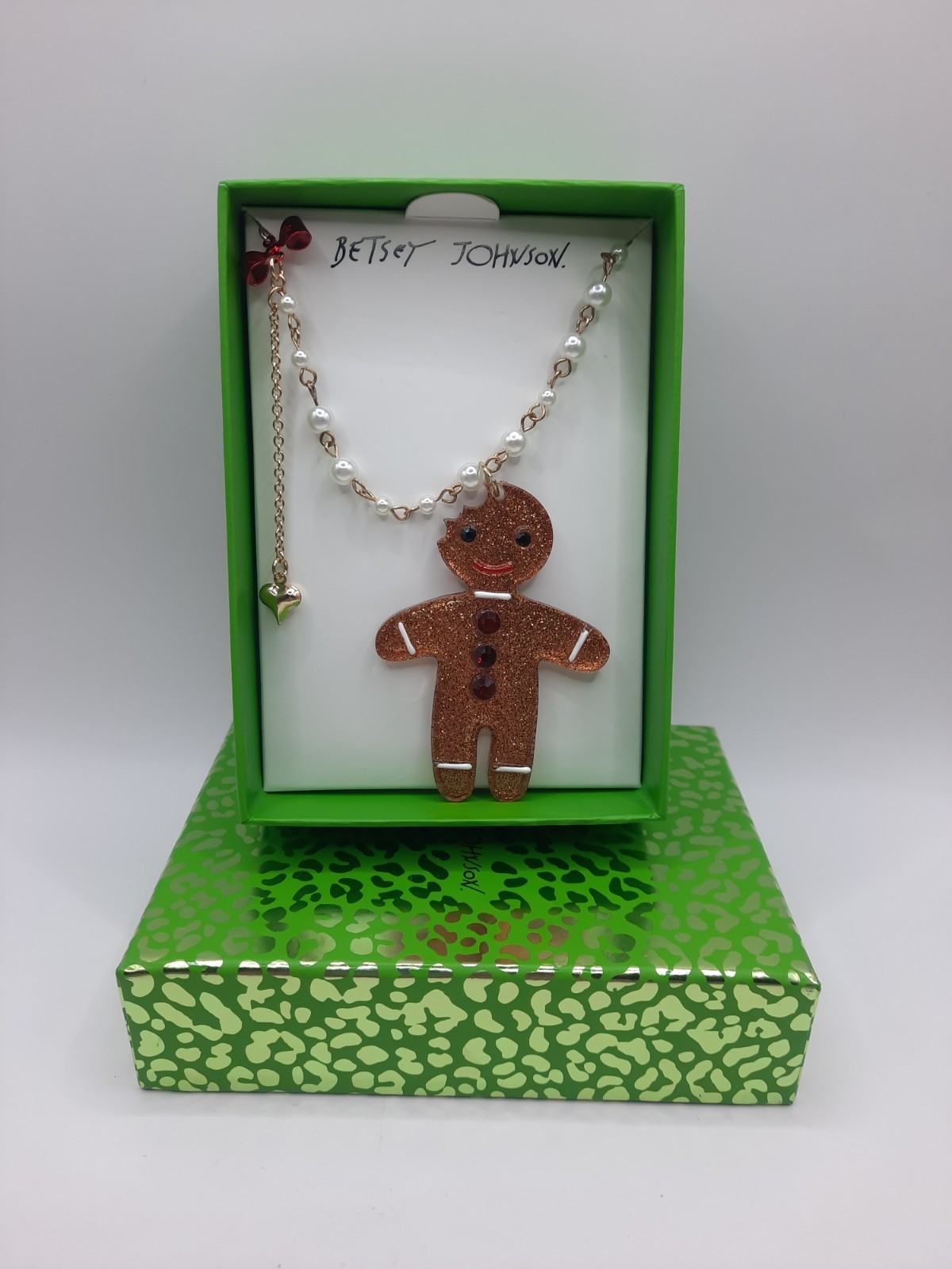 - BETSEY JOHNSON Gingerbread Man Necklace Sparkle Glitter Bow Faux Pearl Holiday