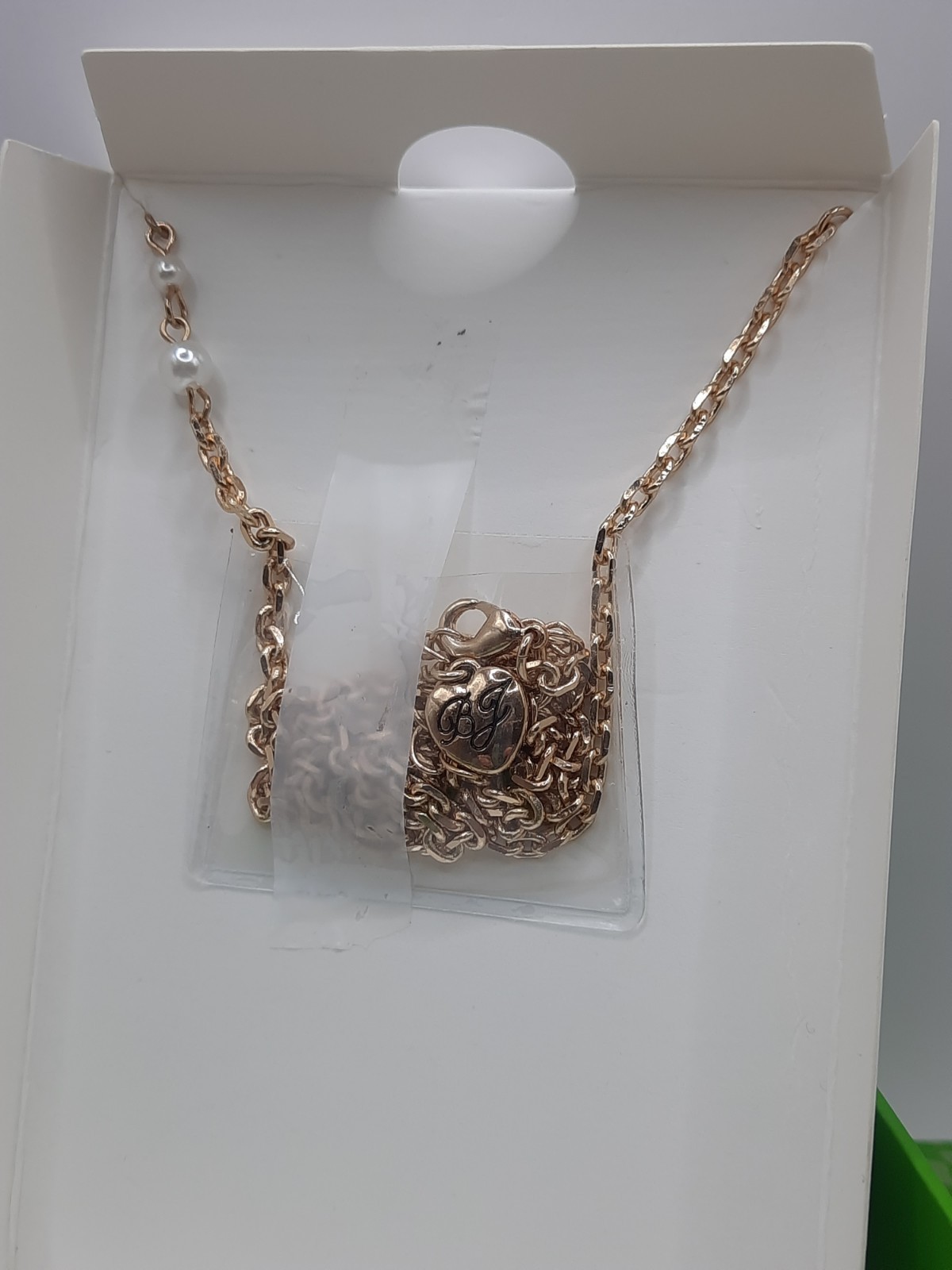 The Betsey Johnson Gingerbread Man Necklace is a festive and whimsical accessory perfect for the holiday season. The pendant features a cute bow shape adorned with glitter sparkle and a faux pearl, adding a touch of sparkle to your Christmas outfit. This statement necklace is signed by Betsey Johnson and makes a charming statement piece for your holiday ensemble, making it a perfect gift for yourself or a loved one.