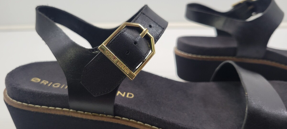 - BG) Cole Hann Original Grand Woman Black Strap Platform Sandals 7B