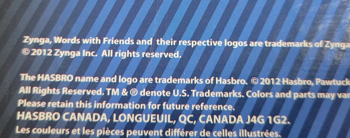 - BG) Hasbro Gaming Words with Friends Board Game 2012 Zynga